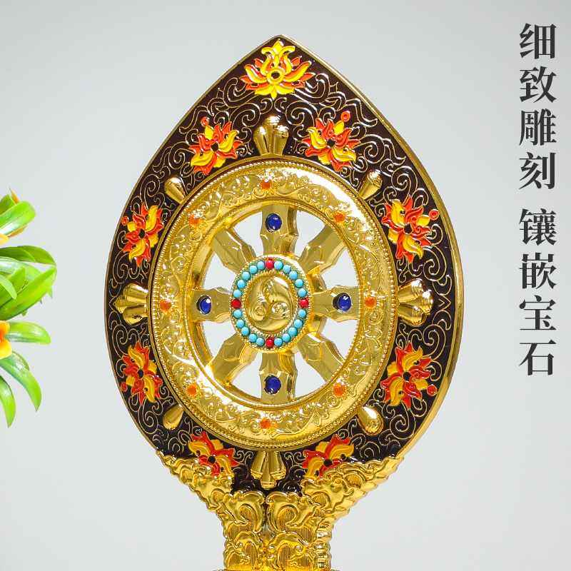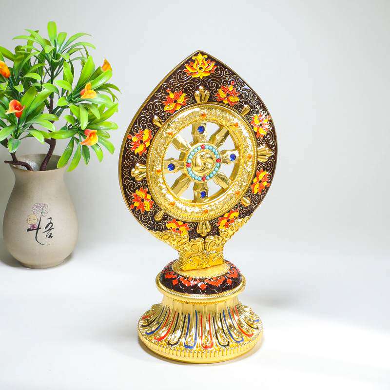📚 法轮藏传密宗用品珐琅彩绘转法金轮王七政宝家用佛前摆件供修供具