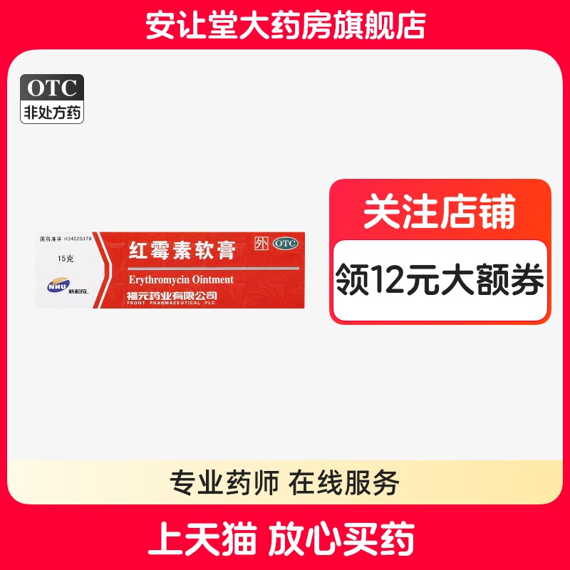📚 福元红霉素软膏官方旗舰店正品脓包疮等化脓性皮肤病外用寻常痤疮