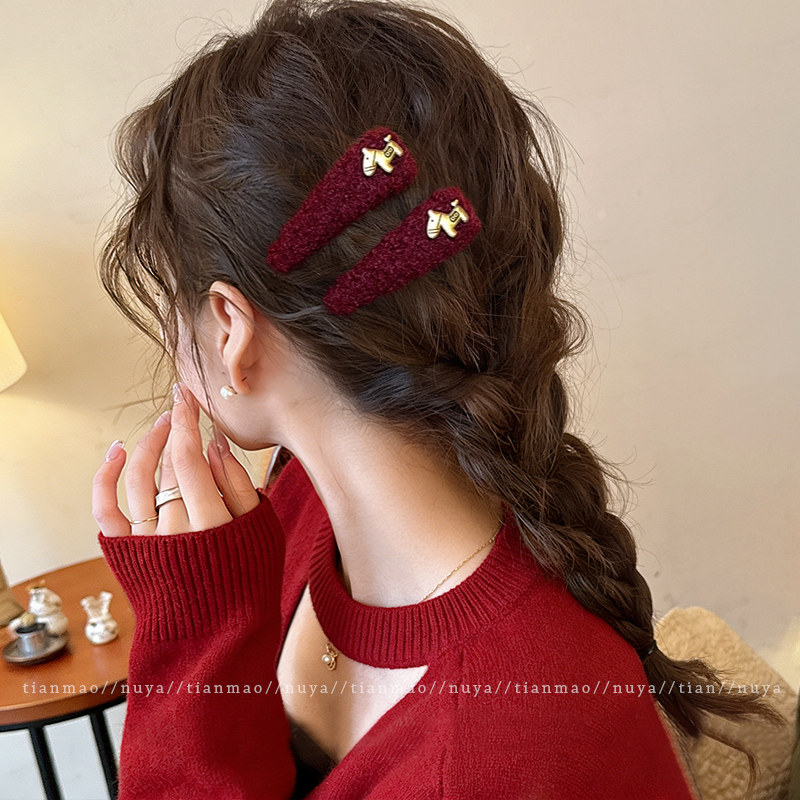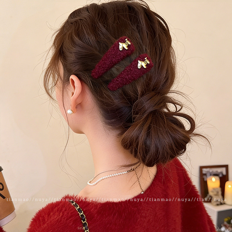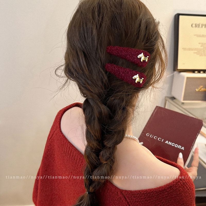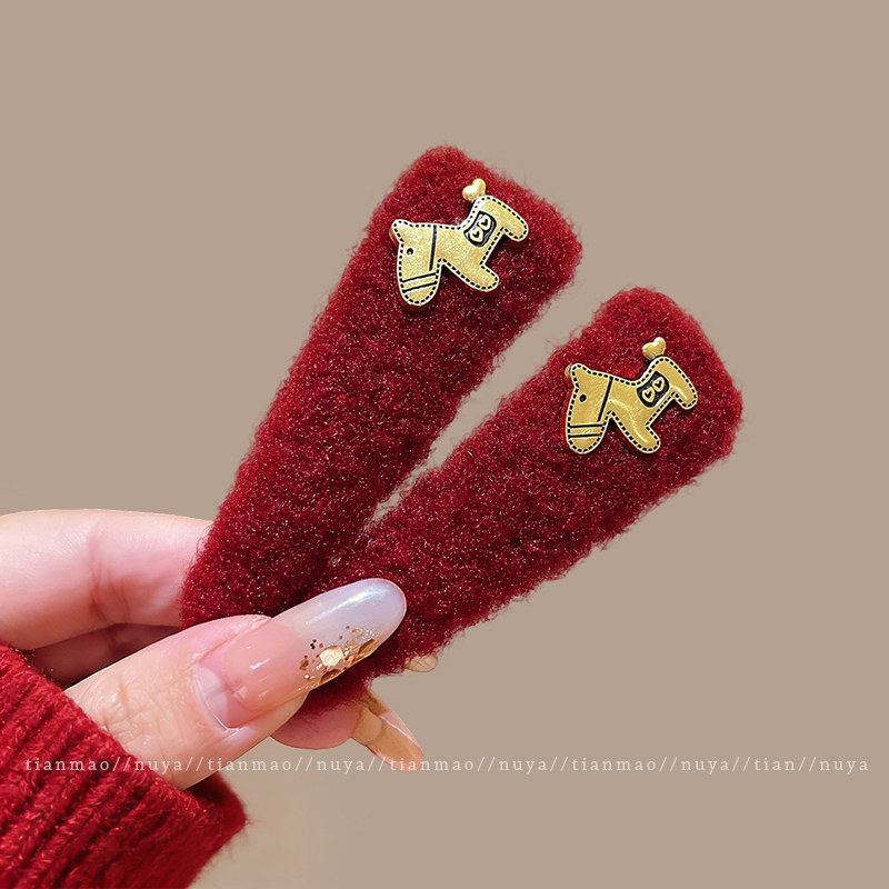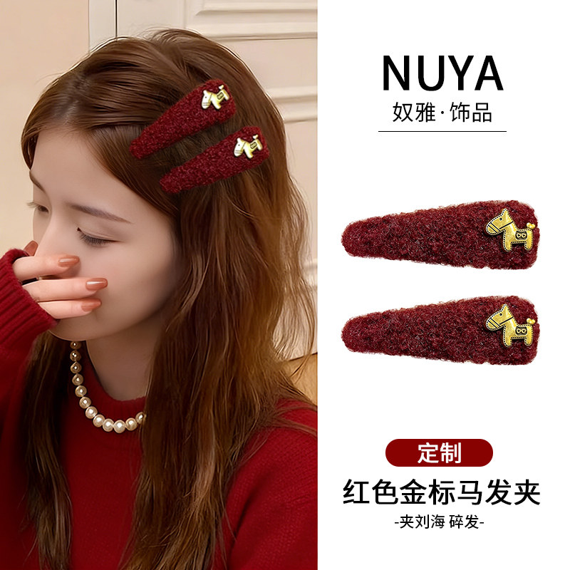 📚 2026马年本命年头饰金标小马毛绒发夹边夹侧边刘海夹碎发发卡bb夹