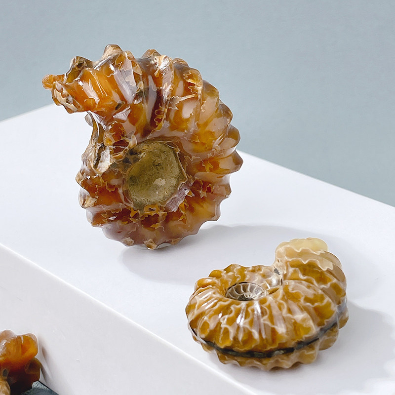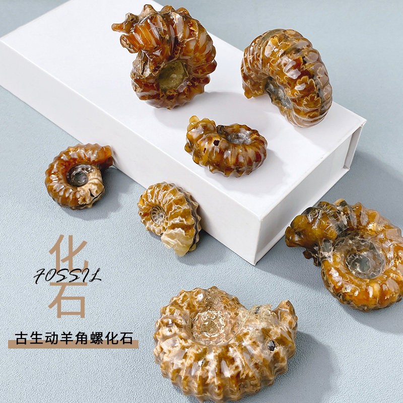 📚 天然古生物羊角螺化石玉化海螺菊石矿石标本石头科普奇石手把玩件