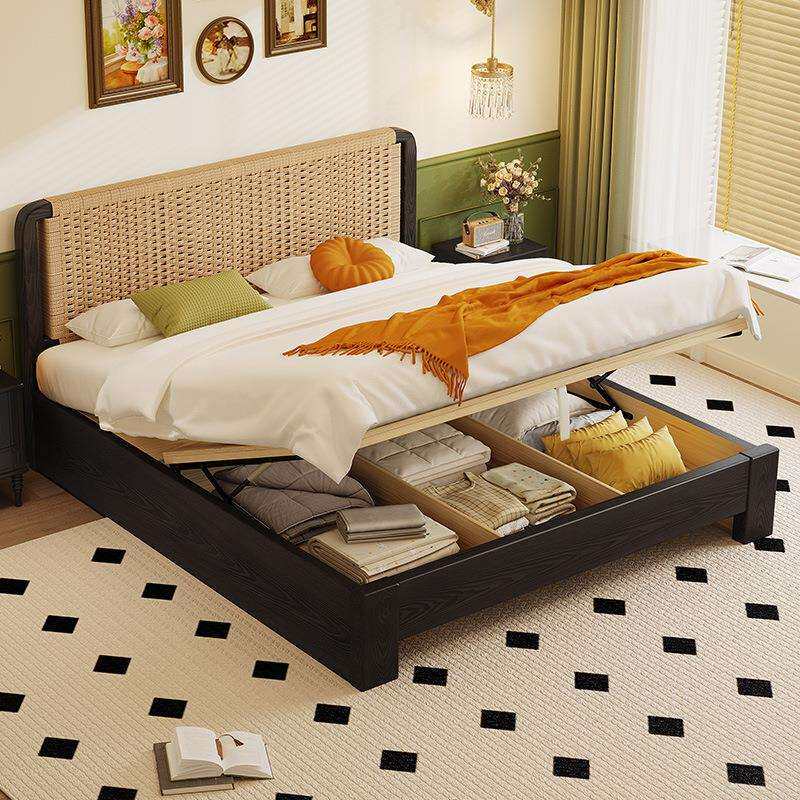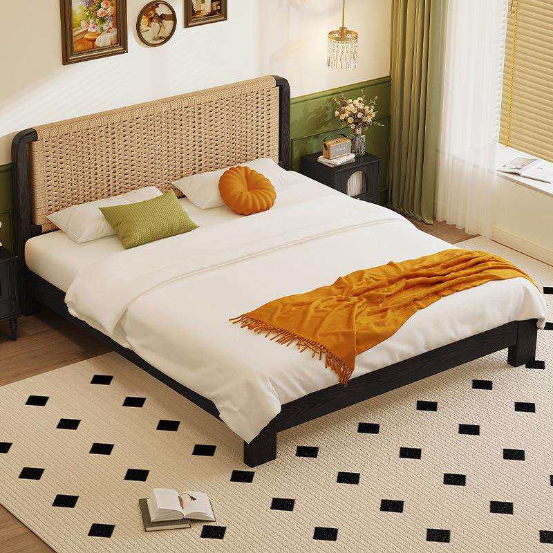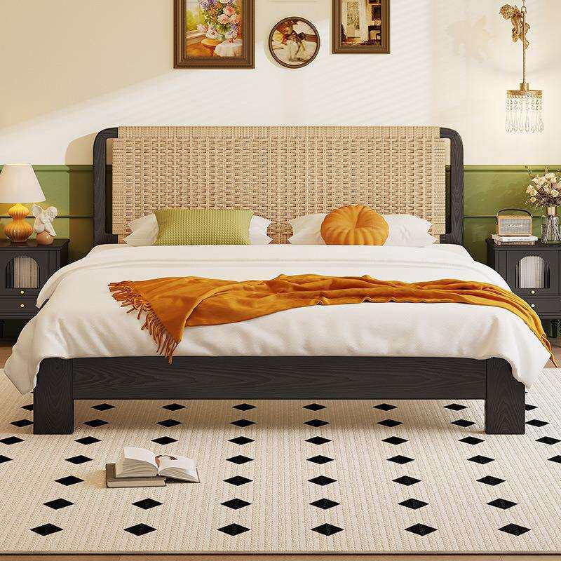 📚 黑色家用1米5的床加床垫双人床高端主卧大床复古榫卯结构全实木床