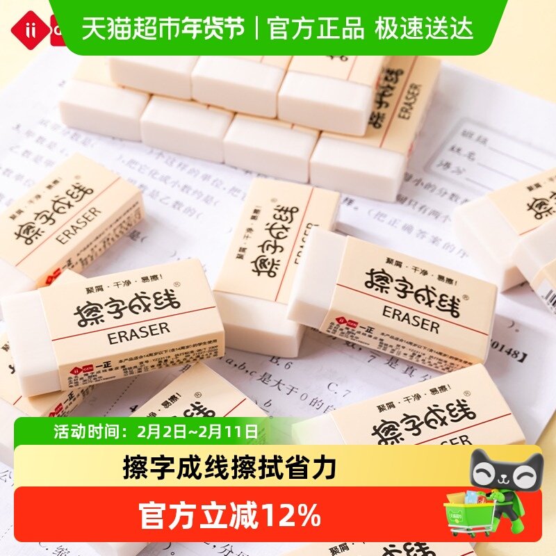 📚 一正擦字成线橡皮擦小学生专用无屑干净不留痕2b铅笔橡皮小号4b