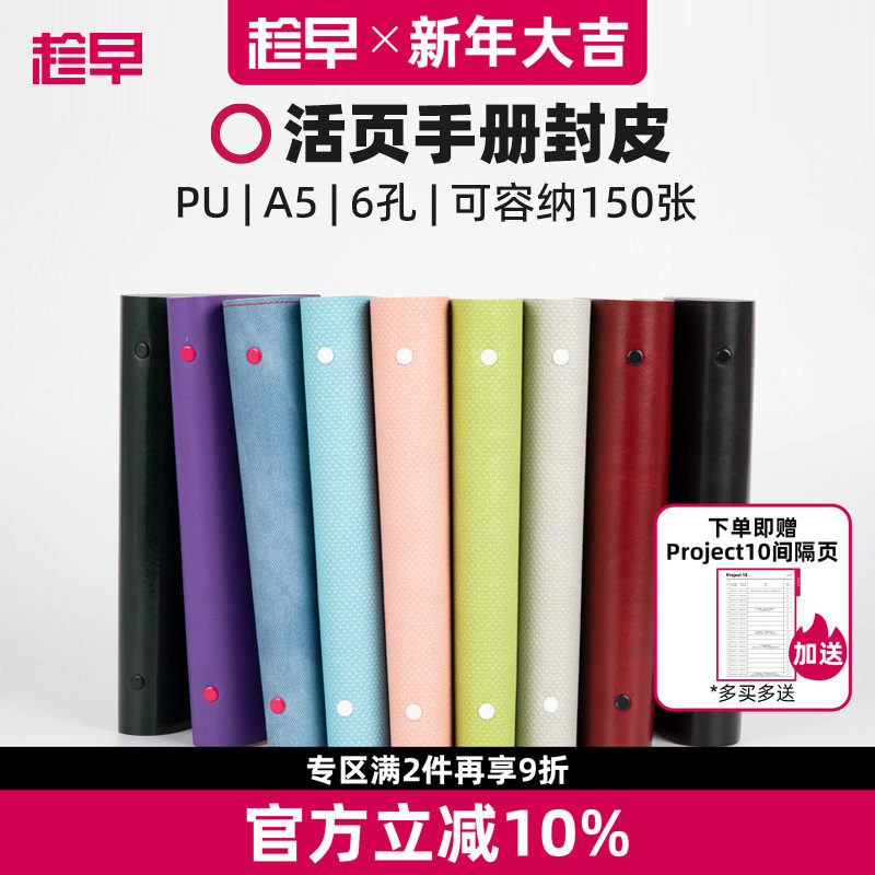 📚 趁早活页【PU软皮封皮】A5六孔活页笔记本手册活页夹线圈本日程本手账本活页本外壳