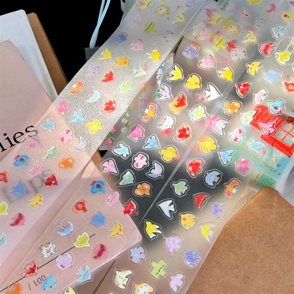 📚 COMO士多原创彩色飞鸟花花手帐胶带装饰点缀贴纸卷盐系和纸胶带