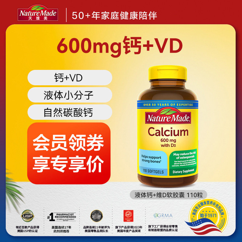 📚 NatureMade液体钙+维生素d3胶囊110粒美国原装进口中老年人补钙