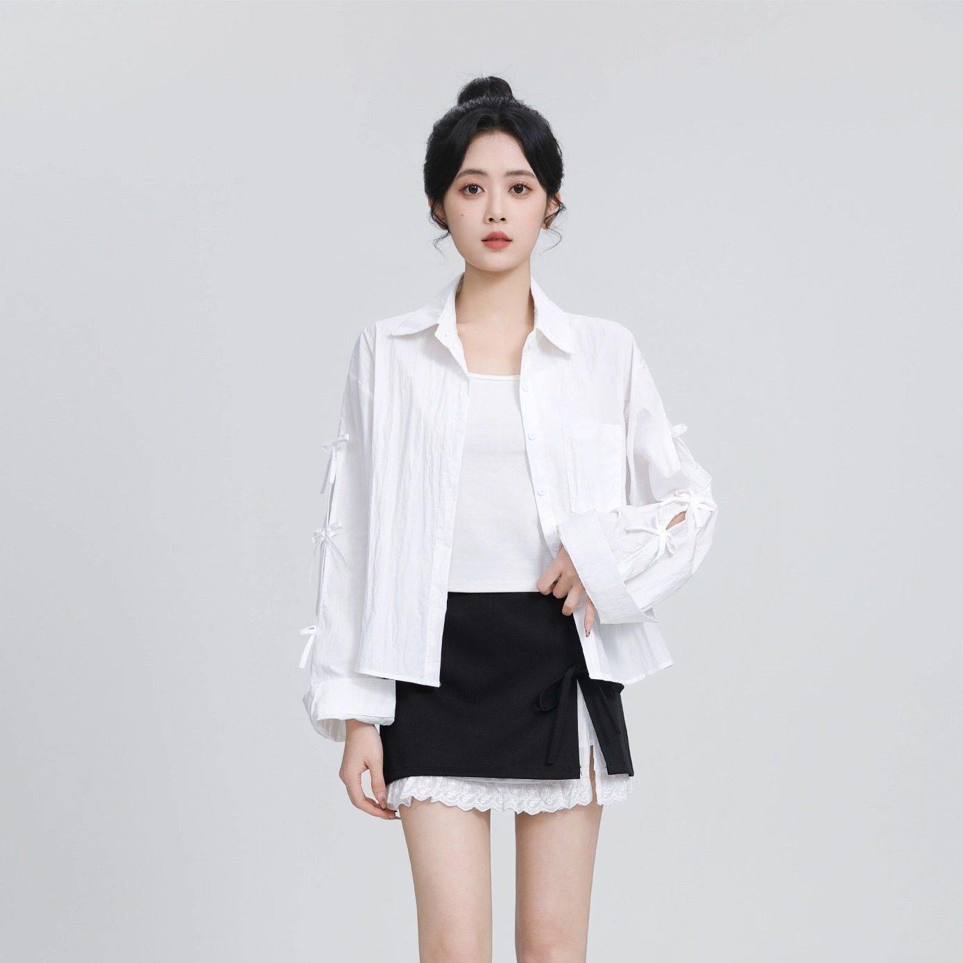 📚 Bobby Bizz长袖短款秋季新款韩版甜美减龄蝴蝶结设计衬衫上衣