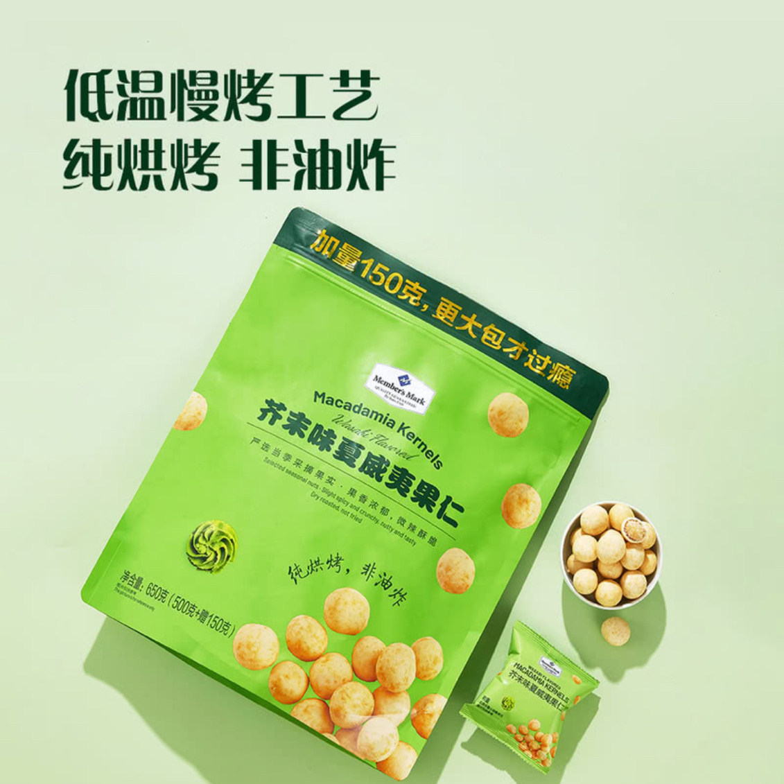 📚 严选会员代购芥末味夏威夷果仁650g独立小包装坚果零食小吃年货