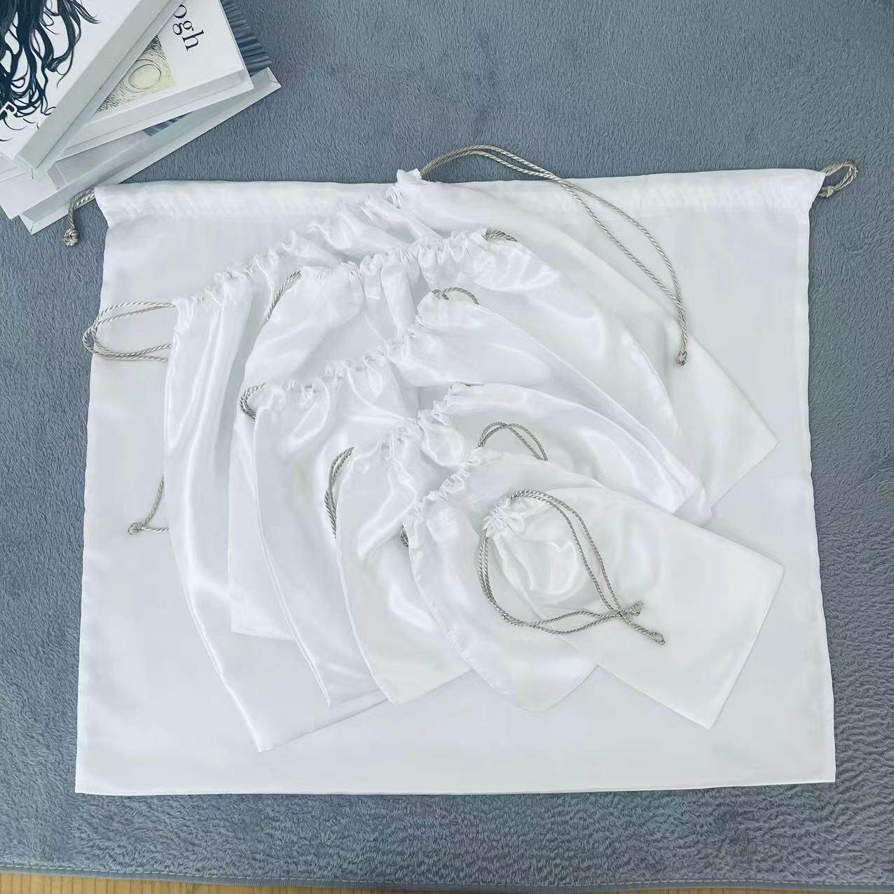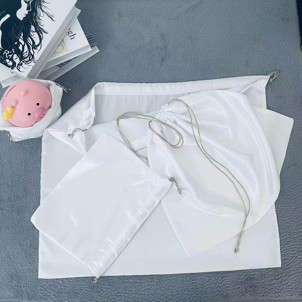 📚 珠光白绸缎包包防尘袋幼儿园衣服裤子被子收纳袋旅行内衣裤抽绳袋