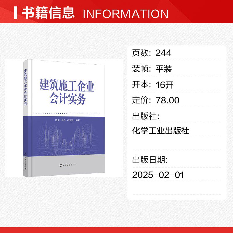 📚 建筑施工企业会计实务 陈洁,侯磊,杨丽丽 编 建筑/水利(新)经管、励志 新华书店正版图书籍 化学工业出版社