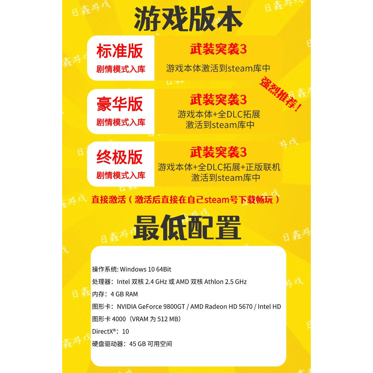 📚 买一送一【武装突袭3】激活码CDKEY全DLC国区游戏入库全球激活