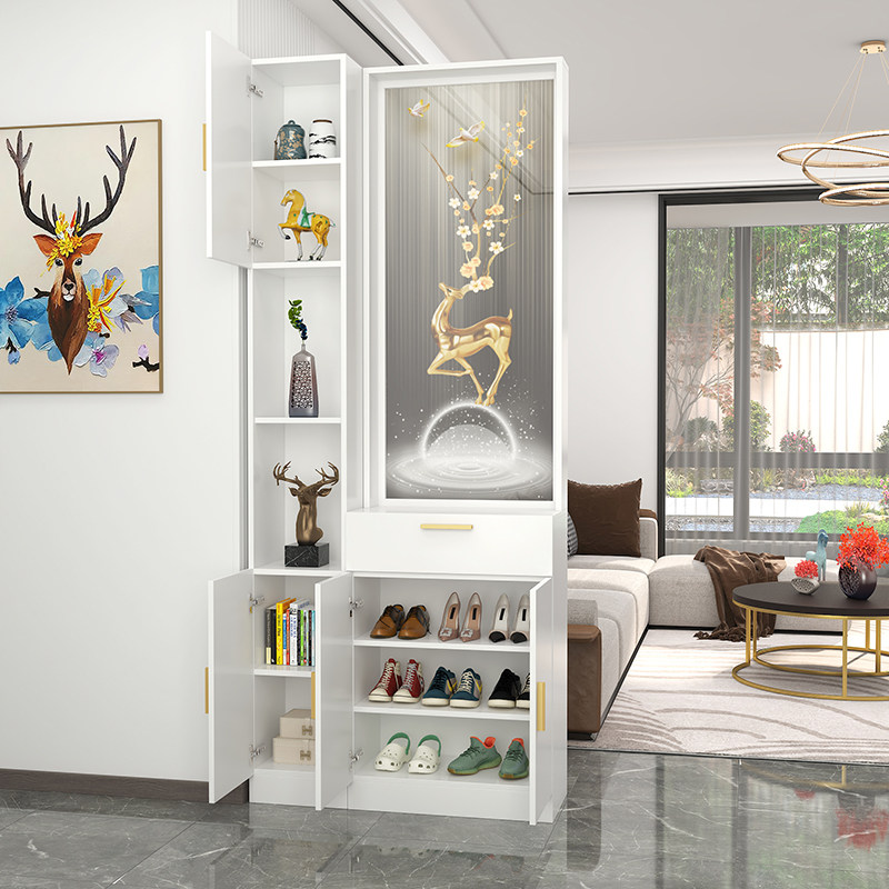 📚 实木屏风隔断置物架入户客厅正对进大门现代简约鞋柜玄关柜子一体