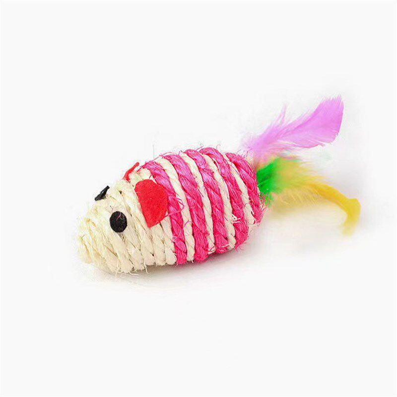 📚 速发猫咪玩具剑麻老鼠 玩嗨磨爪彩色羽毛逗猫磨具 自牙鼠用品