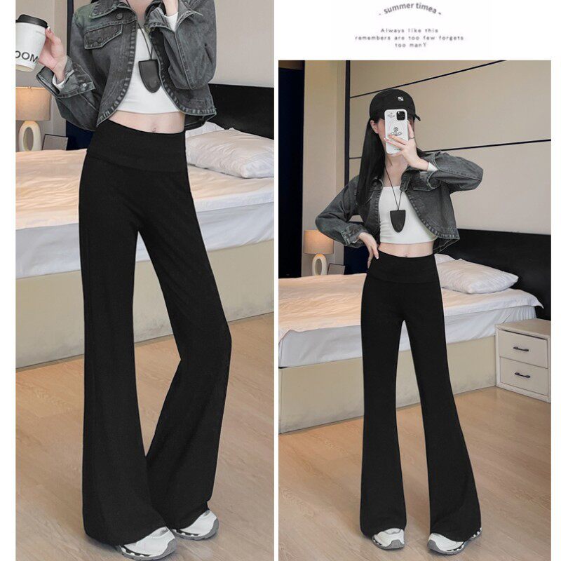 📚 2025新款早秋纯棉微喇叭休闲裤女马蹄长裤垂感修身弹力高腰拖地