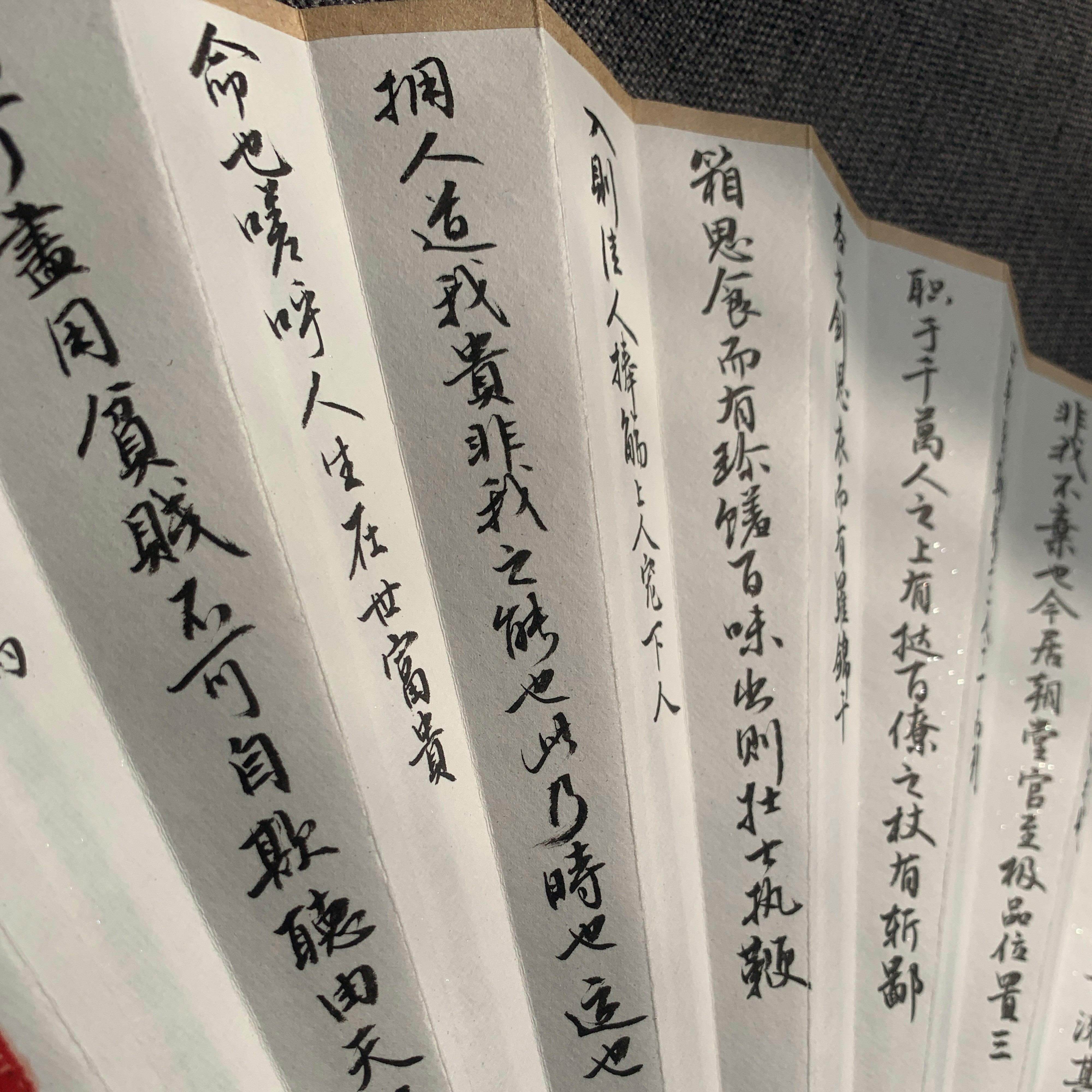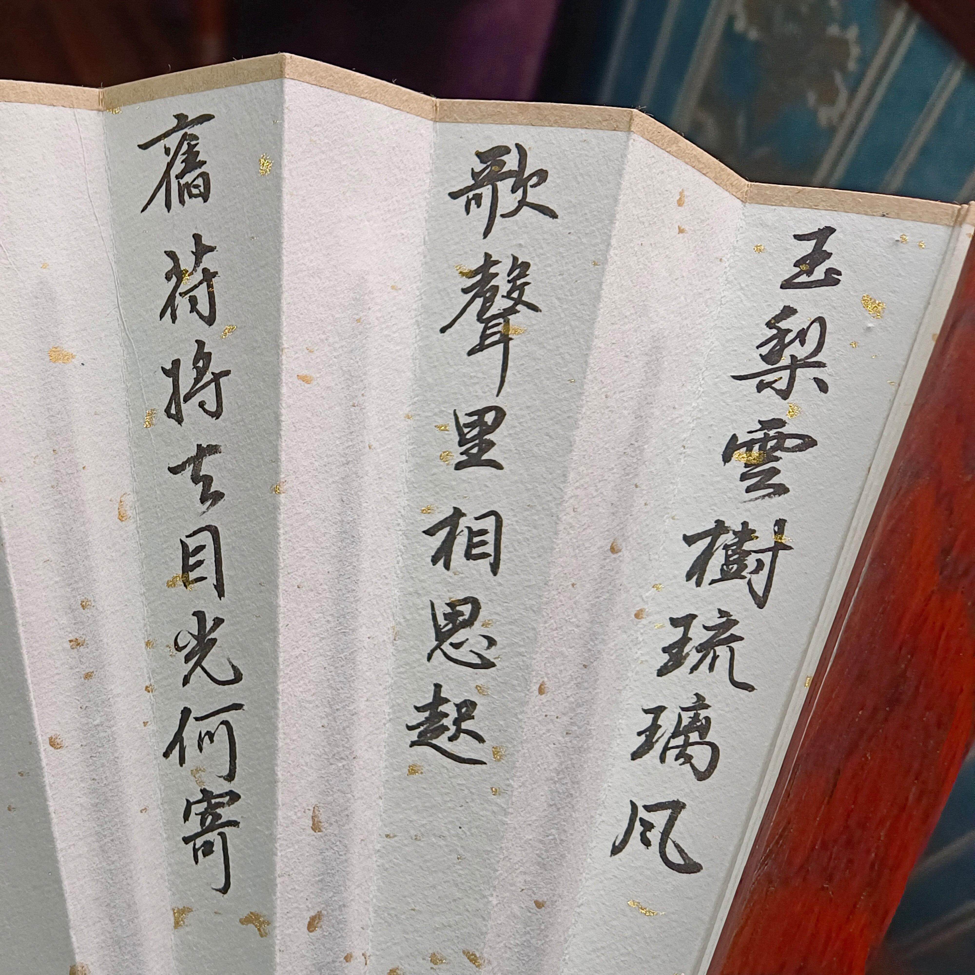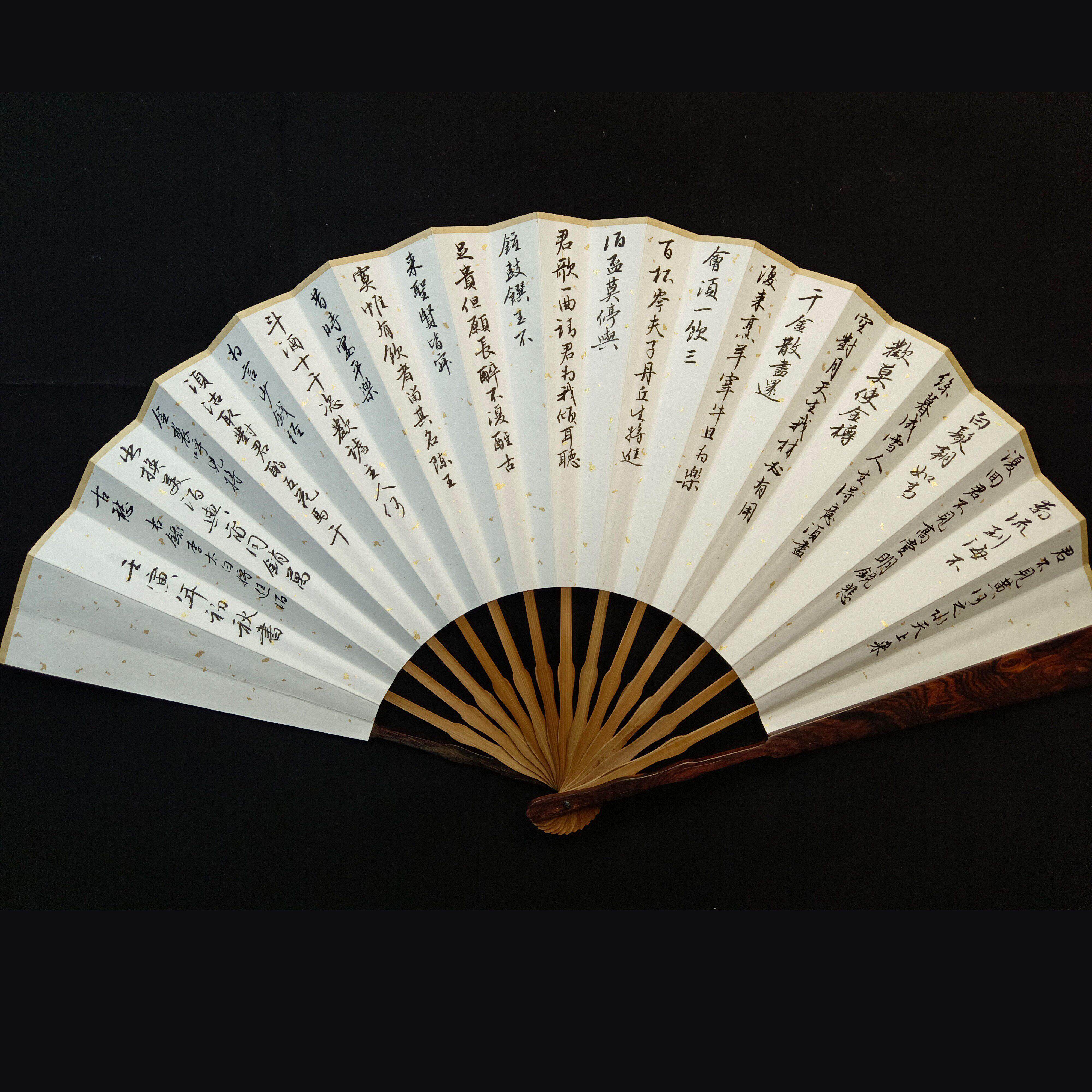 📚 免费题字手写折扇定制名贵木料梅妃棕竹红木乌木小叶紫檀黄花梨等