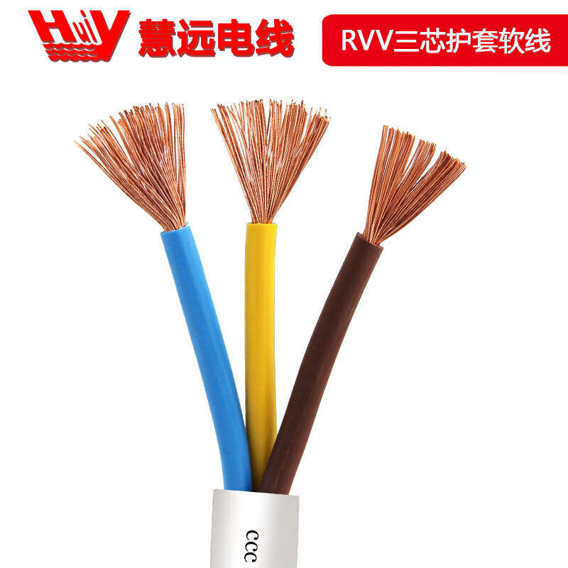 📚 慧远国标控制护套电源线RVV三芯 1.5 2.5 4 6平方 3芯无氧铜100米