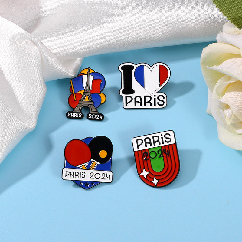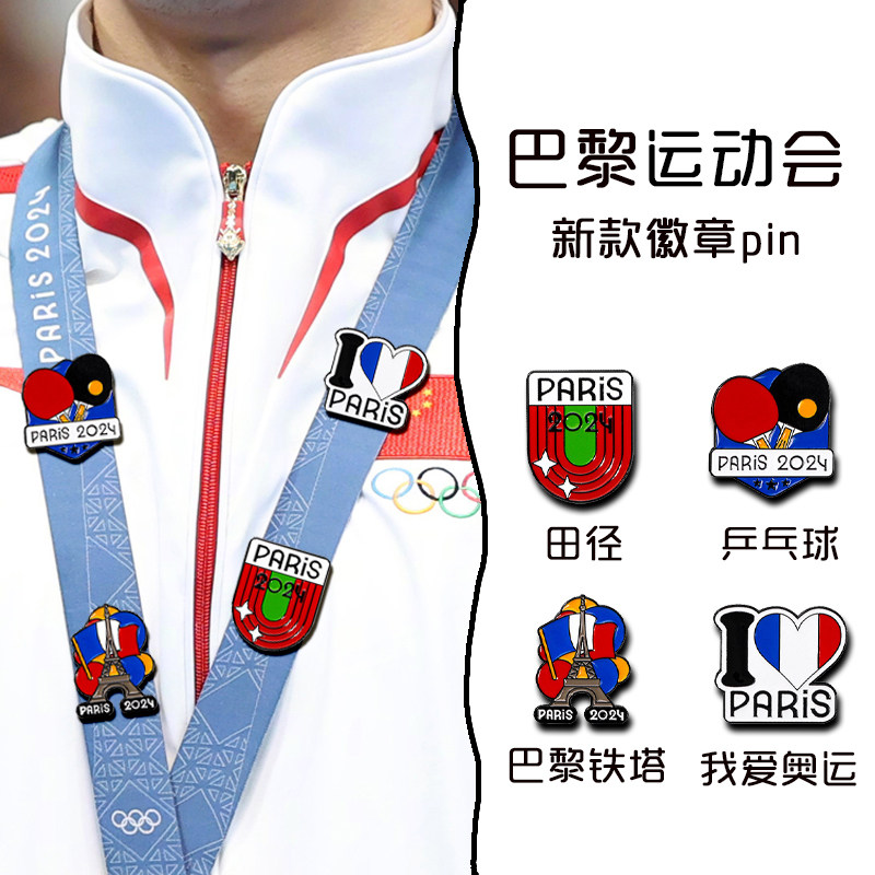 📚 2024巴黎运动会周边乒乓球田径奥运徽章胸针纪念品运动衣服装饰品