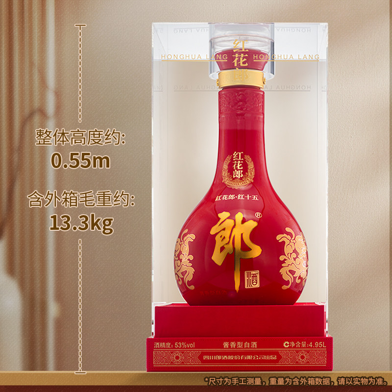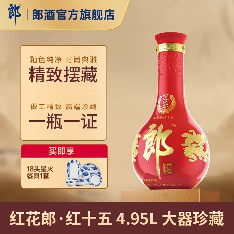 📚 [大器珍藏4.95L]郎酒红花郎53度酱香型超大瓶白酒4.95L收藏纪念