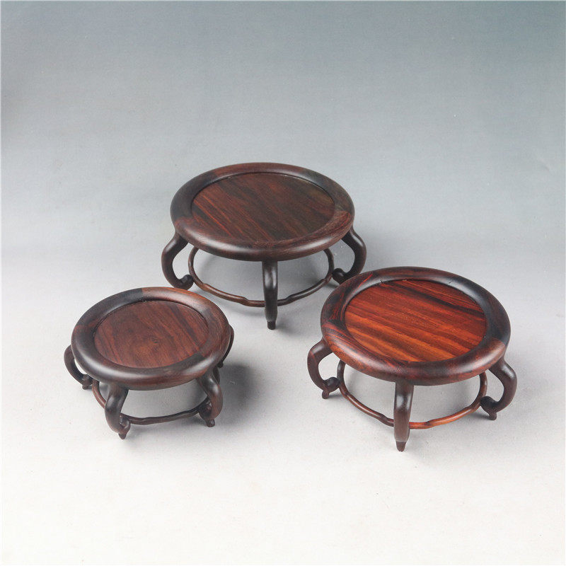 📚 大红酸枝紫光檀明式圆几底托花瓶盆景茶壶玉石古玩木雕底座榫卯