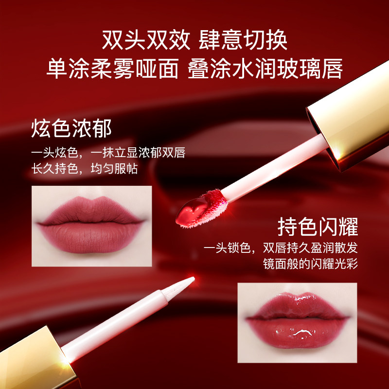 📚 双头设计口红哑光雾面唇部秋冬滋润双效盈润持色唇釉不易掉色