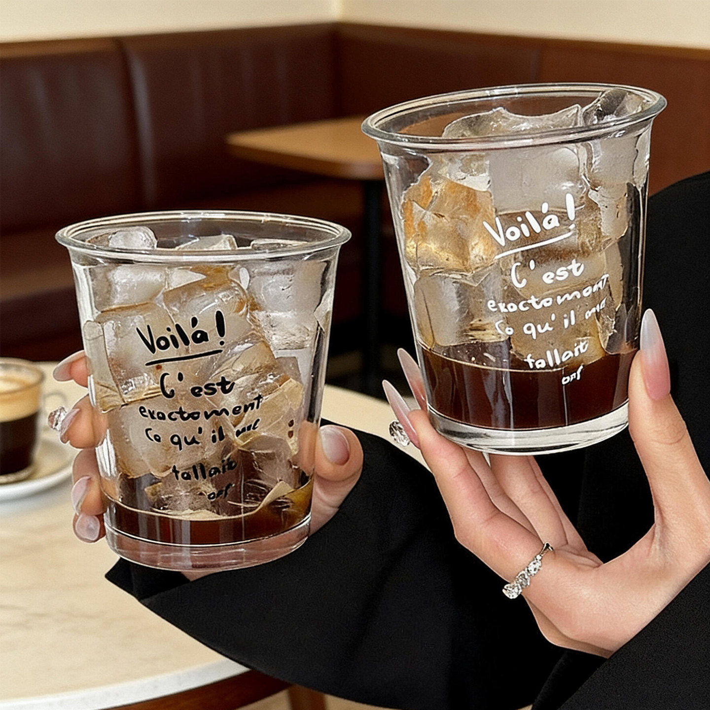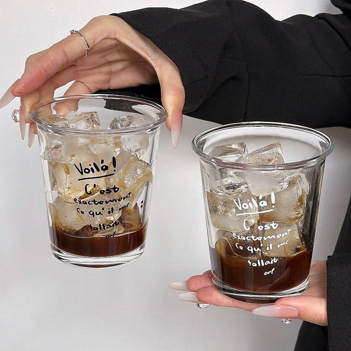 📚 玻璃咖啡杯冰美式杯子家用水杯ins高颜值英文字母拿铁牛奶饮料杯