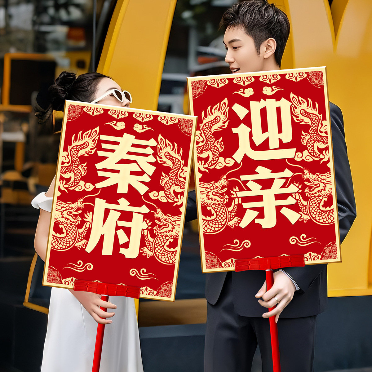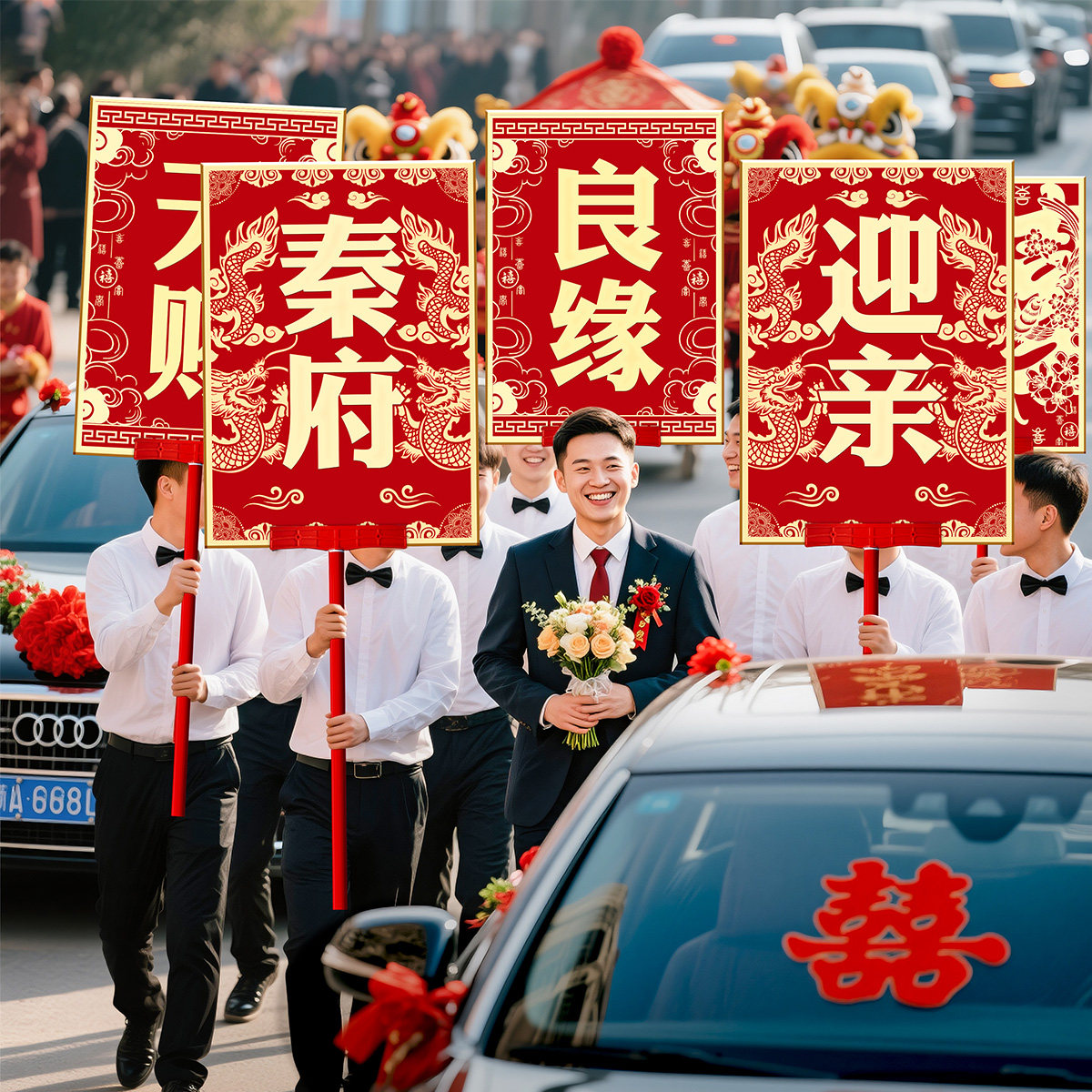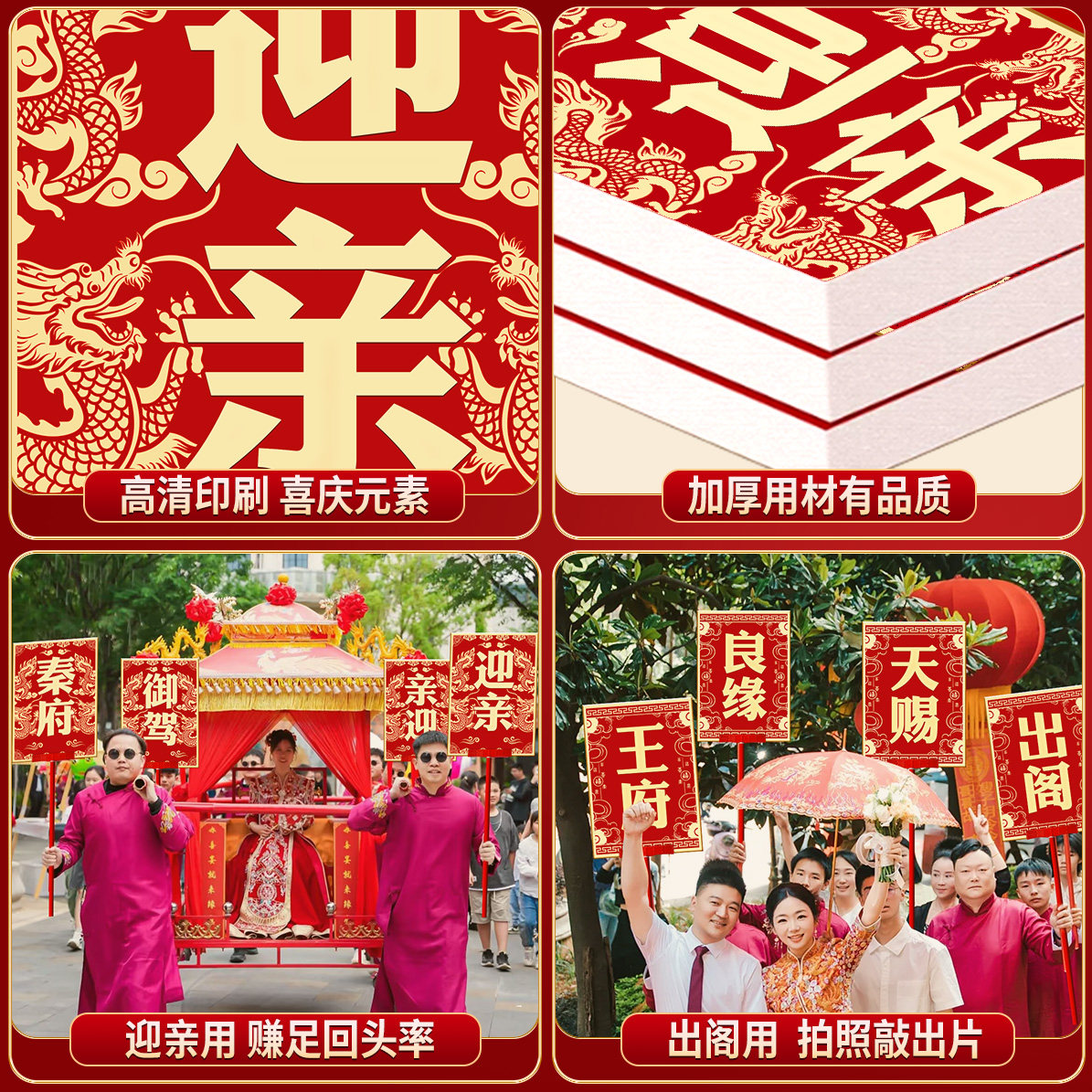 📚 结婚迎亲手举牌农村中式婚礼复古网红接亲牌匾花轿道具喜牌子定制