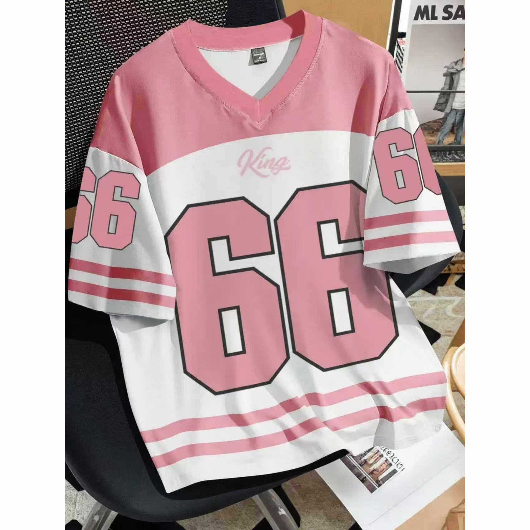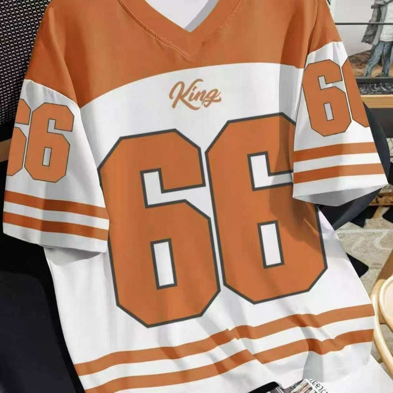 📚 2025 V-neck jersey T-shirt short sleeved retro sports style
