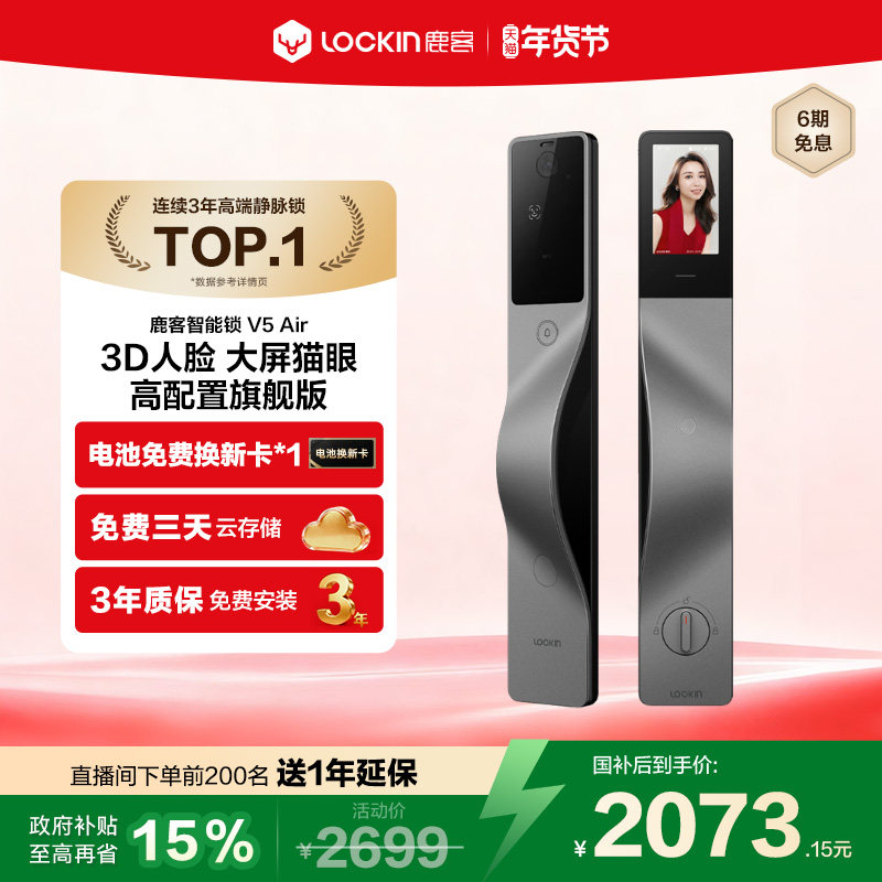 68¥ MF278 nec5Upsgl65¥ https://m.tb.cn/h.7zr7tTx 鹿客V5Air智能锁指纹锁3D人脸智能门锁猫眼大屏密码锁家用门锁 --------------------- 【原售价】6,999元 【现售价】2,439元。