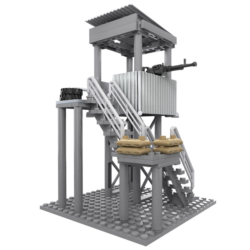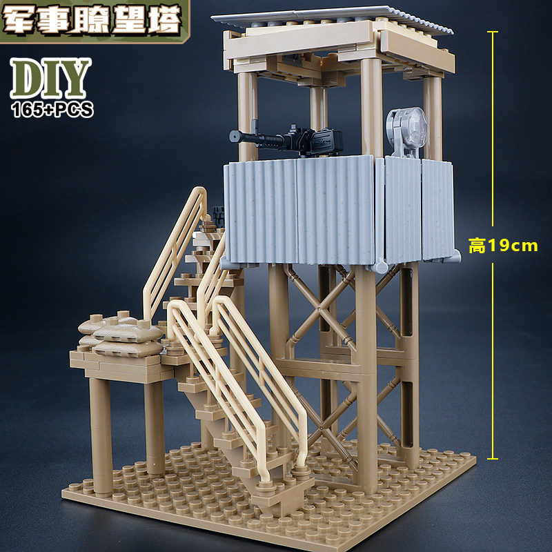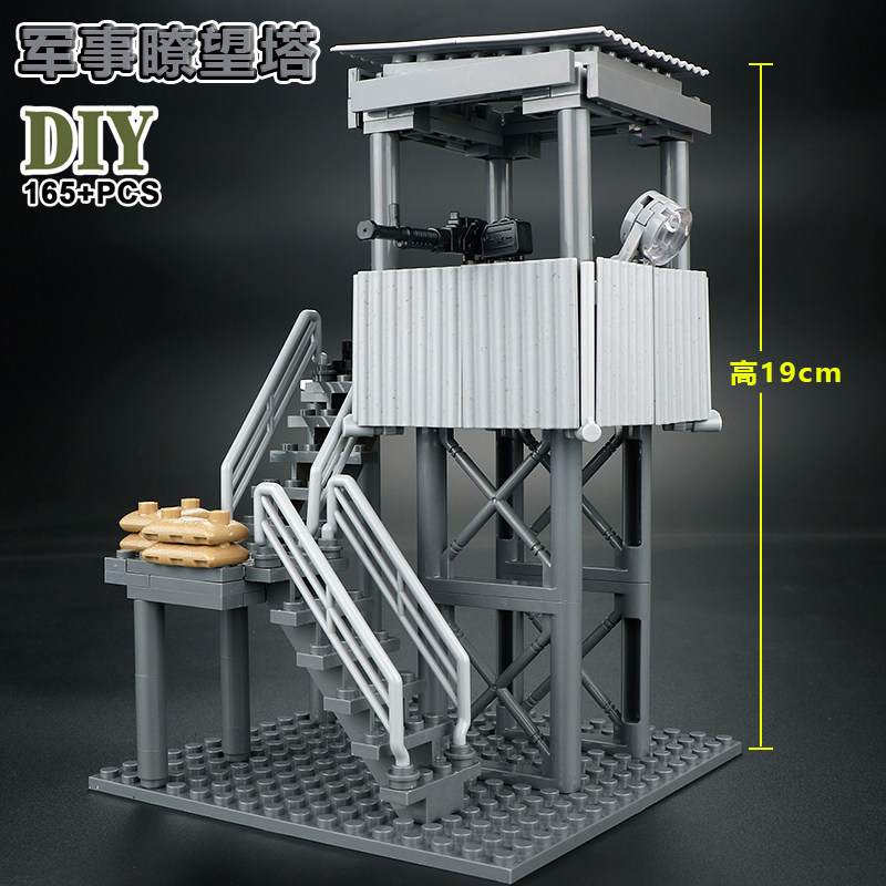 📚 中国积木特种兵人仔军事瞭望塔拼装哨塔建筑模型场景哨所儿童玩具