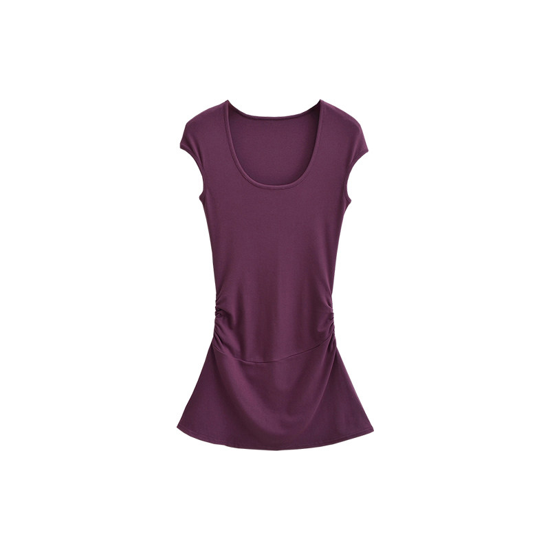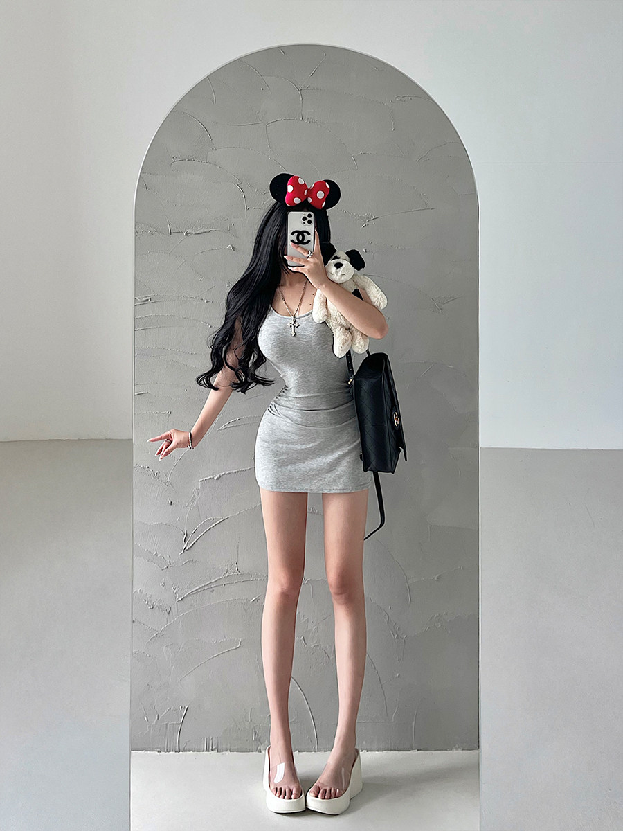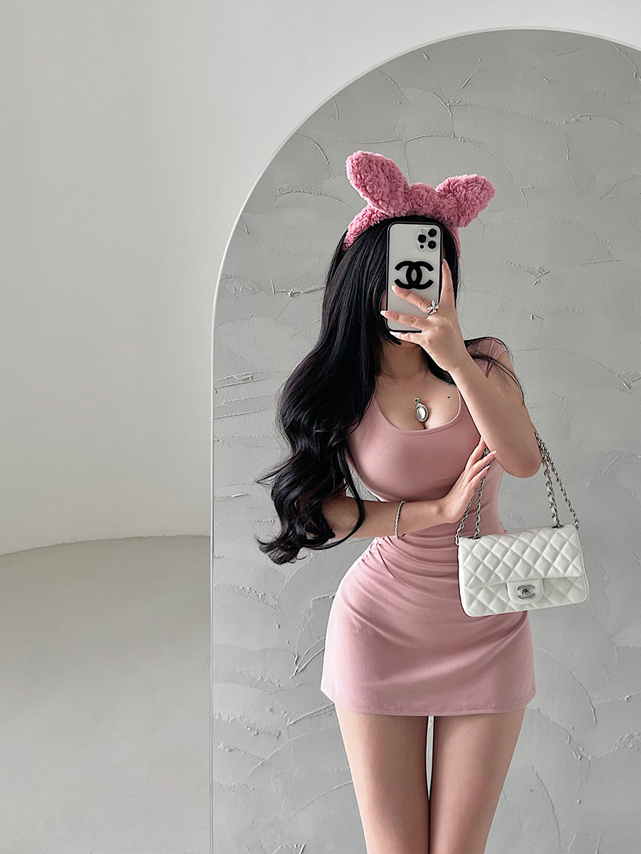 📚 YoungGirlDay纯欲辣妹性感U领修身褶皱收腰短袖A字包臀连衣裙短裙