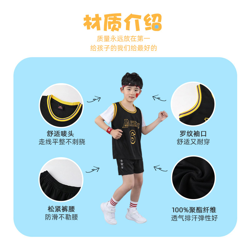 📚 库里30号球衣儿童背心套装速干女童短袖球服定制小学生篮球服男童