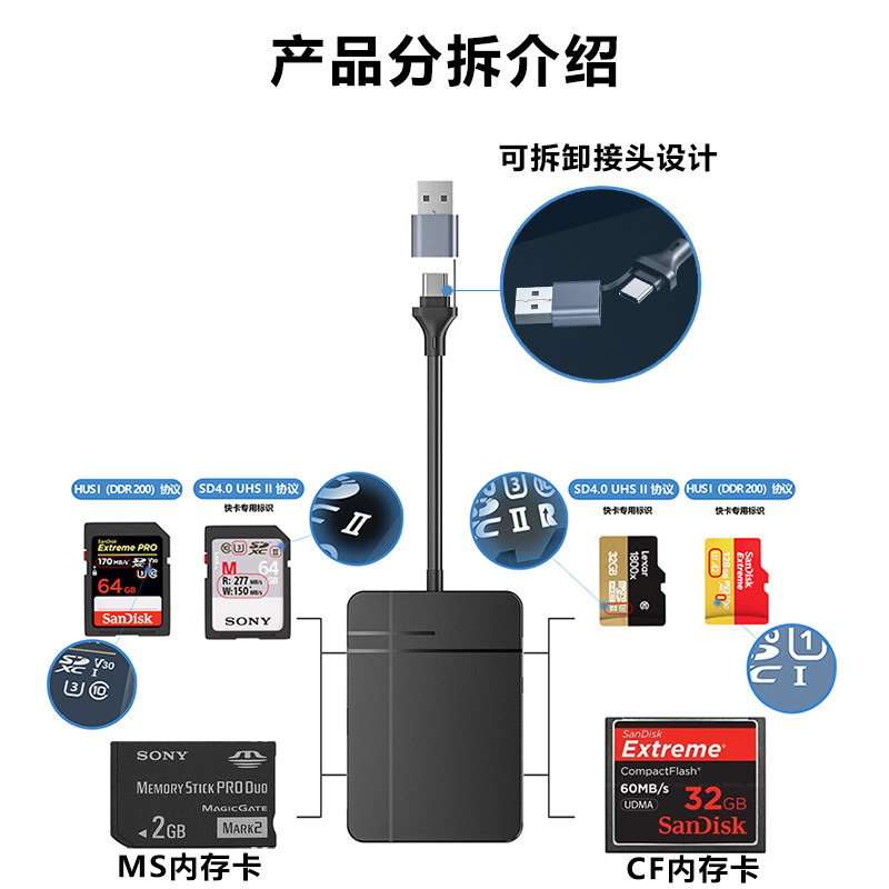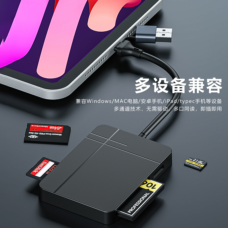 📚 相机读卡器多功能合一尼康CF卡索尼MS卡西门子MMC储存ccd佳能SD卡TF内存高速款适用苹果手机type c电脑传输线