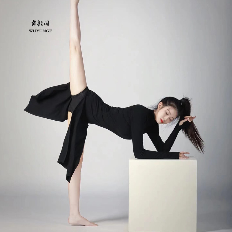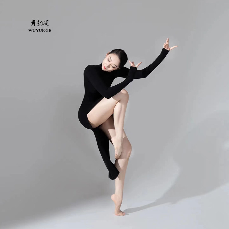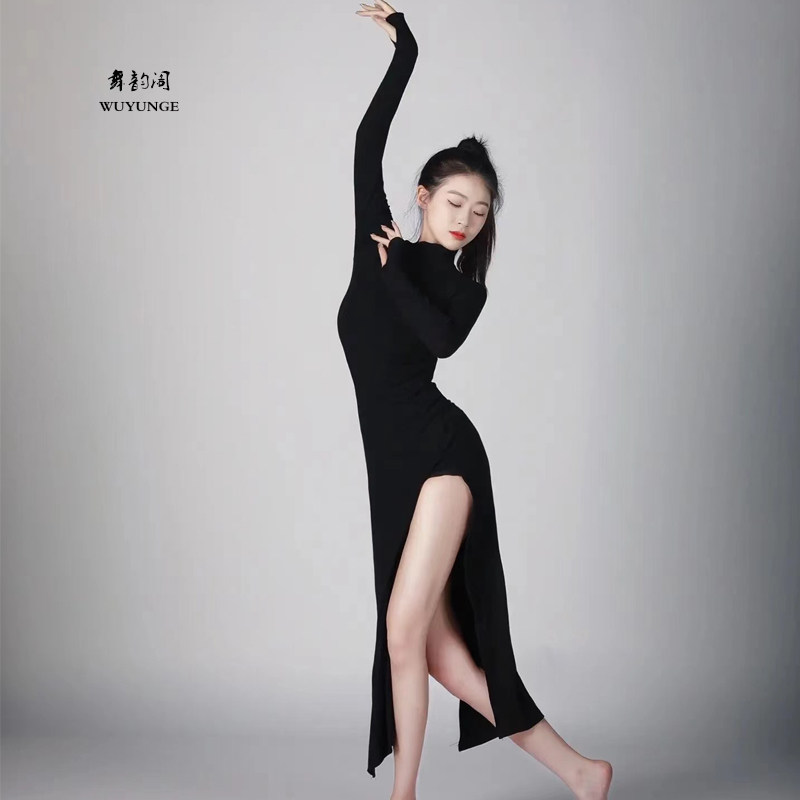📚 舞韵阁古典舞长袖练功服中国现代舞形体修身演出服双开衩弹力旗袍