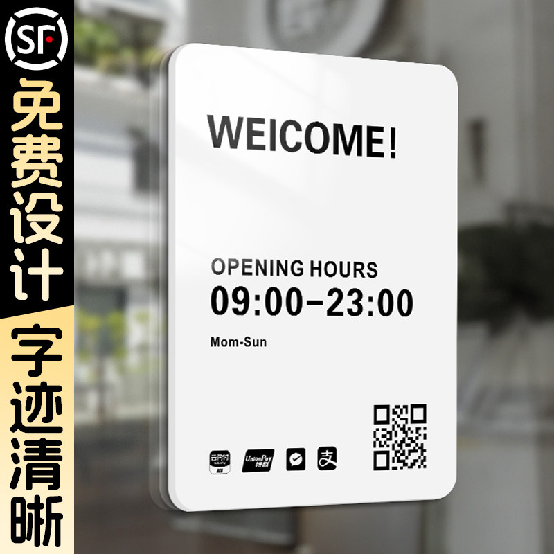 📚 营业时间告示牌门店营业中有事外出挂牌自粘高级餐厅餐饮店门头广告指示展示字玻璃门上班时间联系方式提示贴
