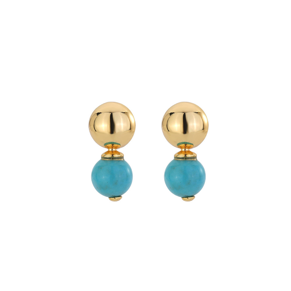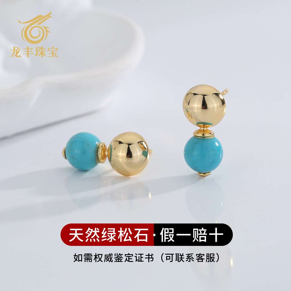 📚 龙丰绿松轩S925银镀18k金正品天然绿松石圆珠耳钉女款高级感满满