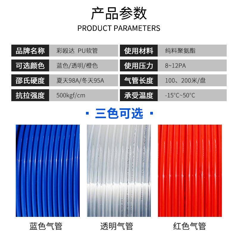 📚 足米气动PU气管软管 空压机气泵 高压管防爆透明6/8/10/12/16mm