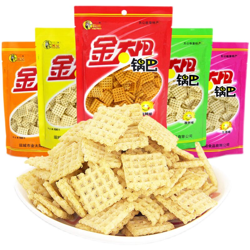 📚 运城特产金太阳锅巴麻辣牛肉五香孜然鸡味怀旧即食膨化休闲小零食