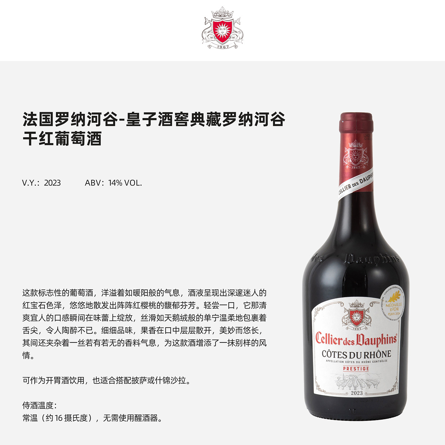 📚 GG金奖果香甜美!法国罗纳河谷皇子酒窖典藏AOC级干红葡萄酒 2023