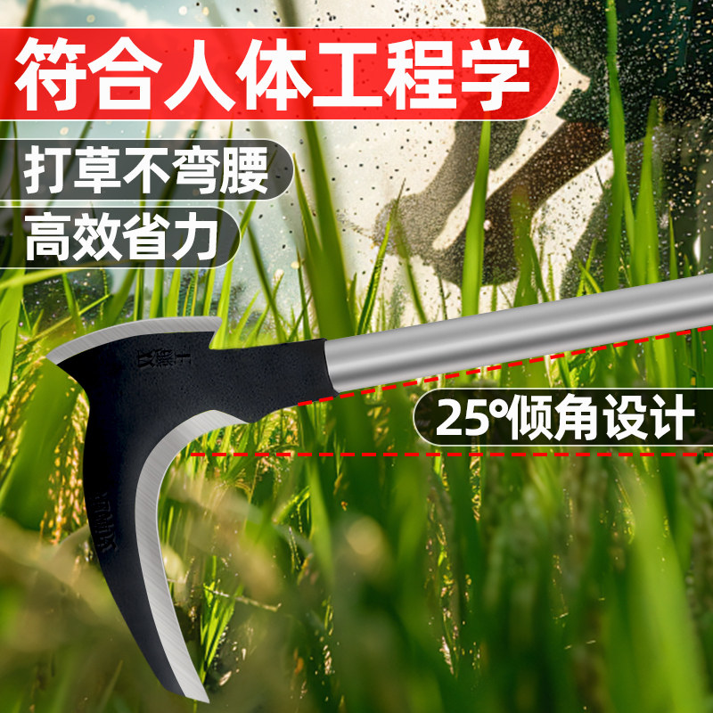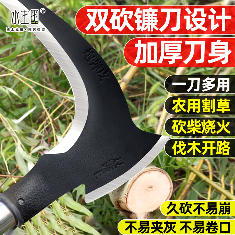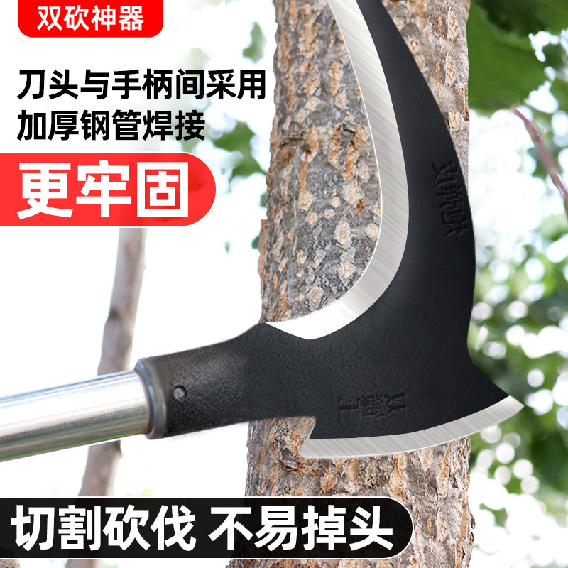 📚 高锰钢镰刀砍割两用割草刀全钢锻打户外农用加长杆折叠镰刀砍柴刀