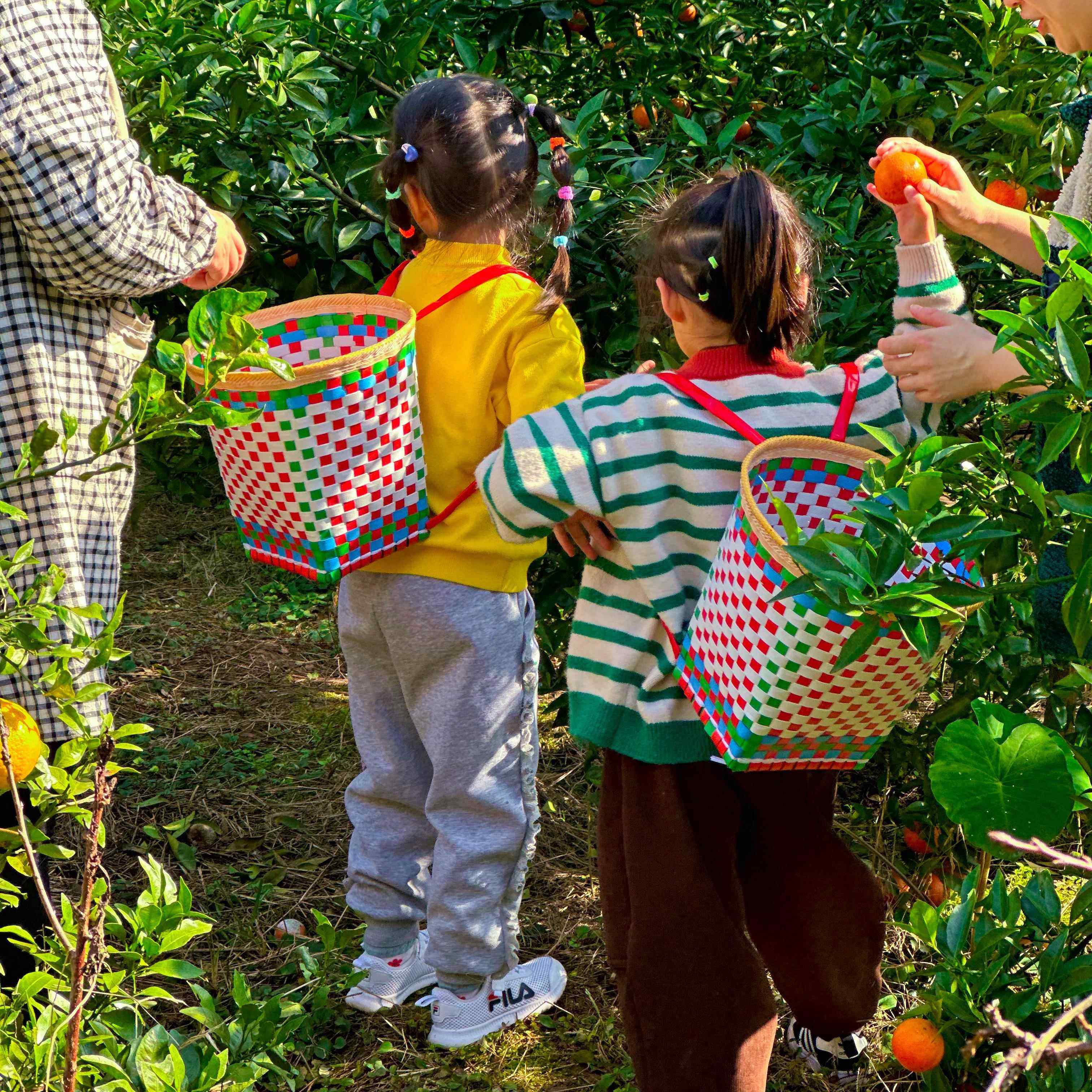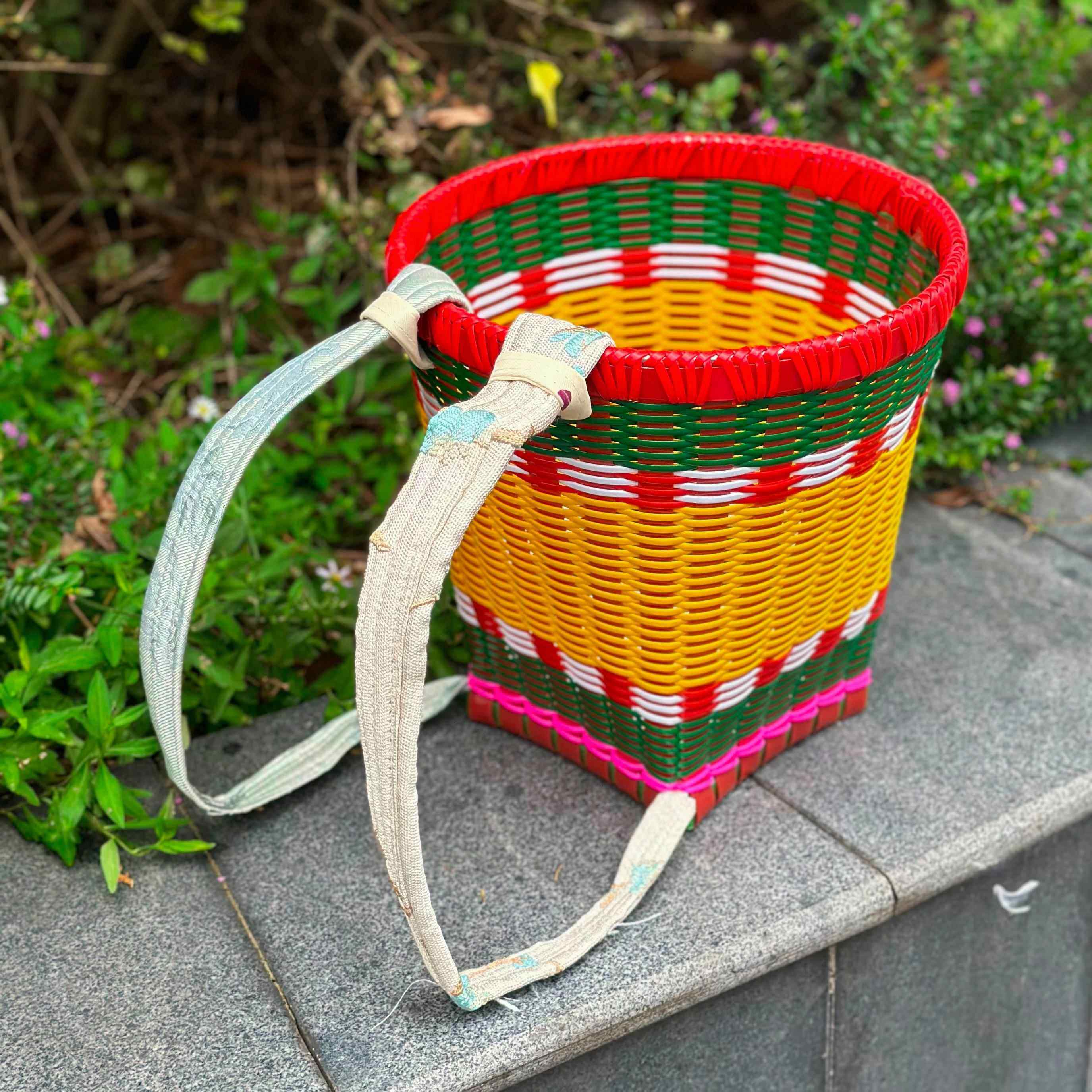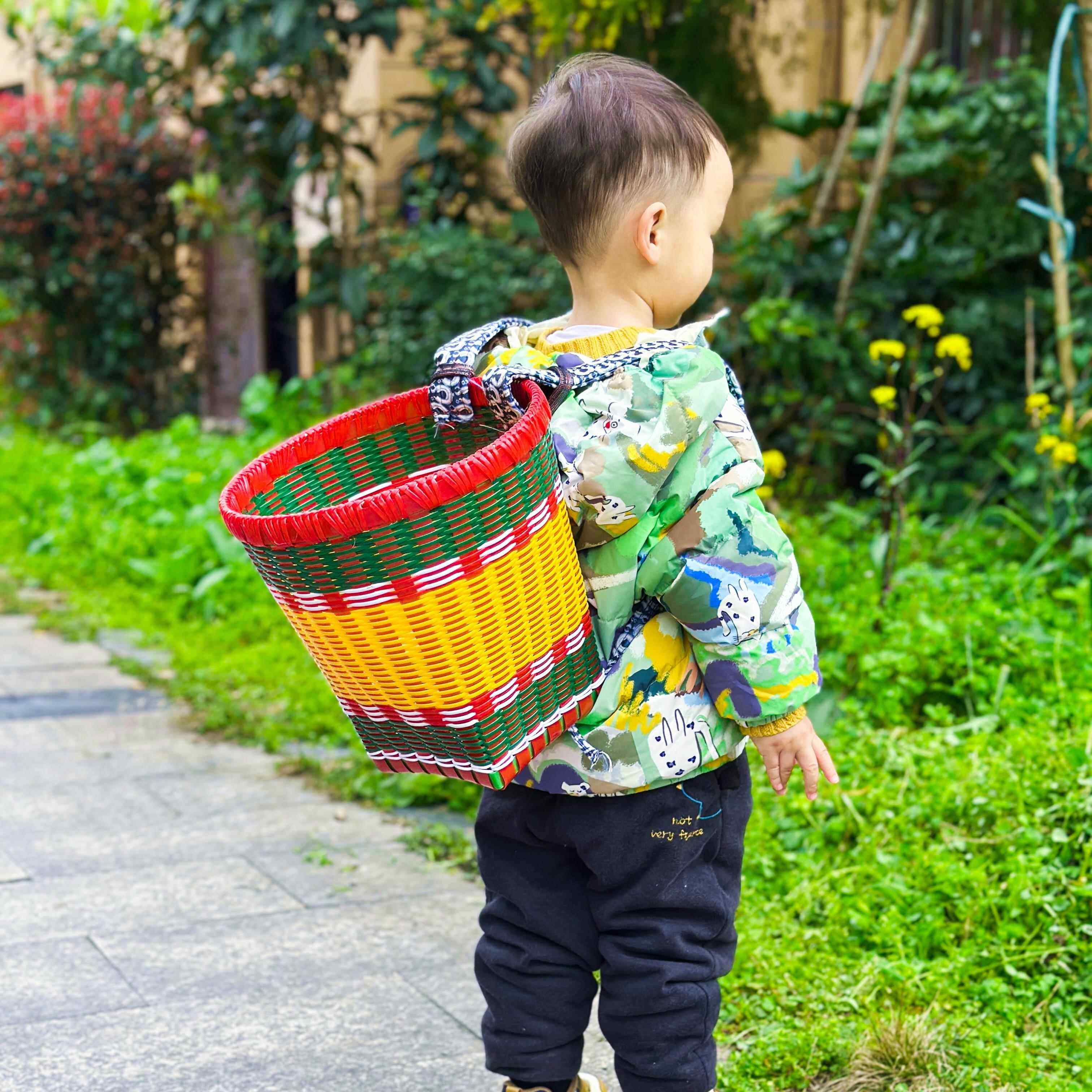 📚 儿童背篼四川纯手工编织塑料舞蹈道具幼儿园游戏小背篓小背篼