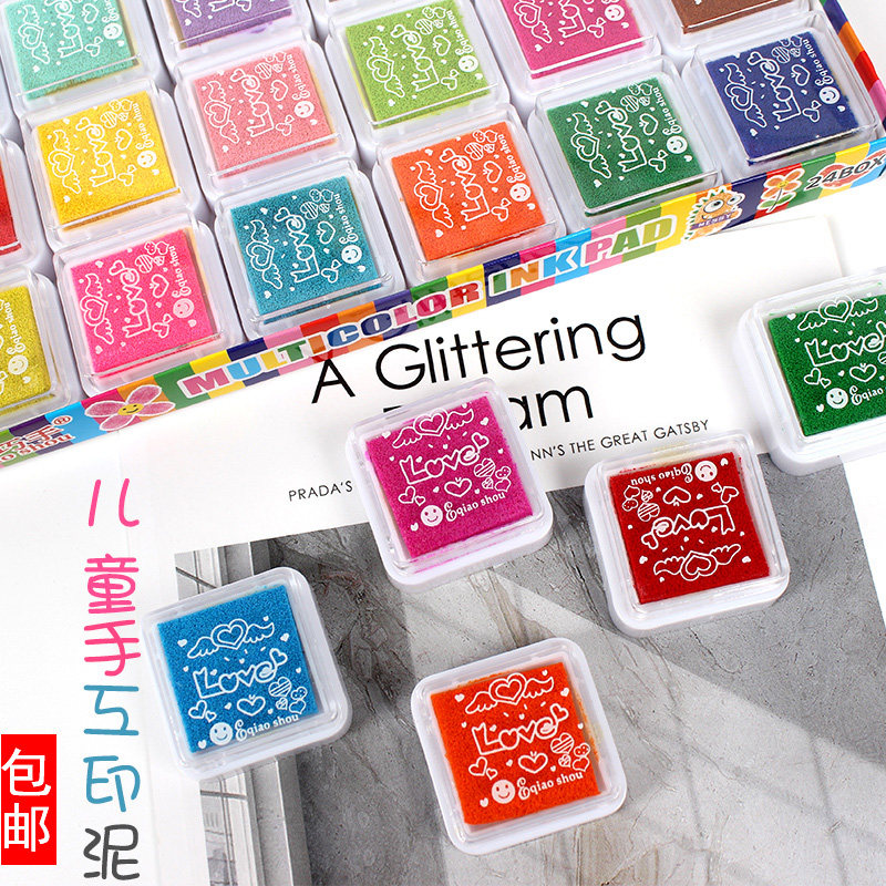 📚 创意儿童手指画印泥套装可水洗12色24小学生彩色印章印台画画材料