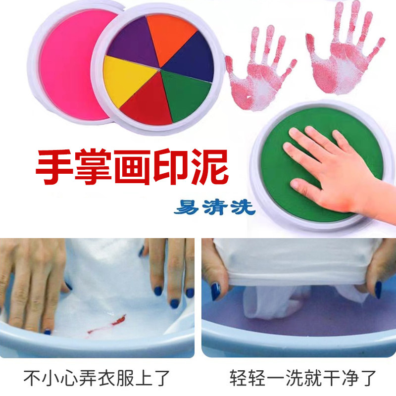 📚 儿童手指画印泥印台幼儿园绘画涂鸦手掌印泥画颜料可水洗手掌印盘