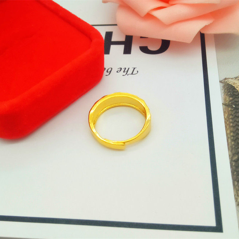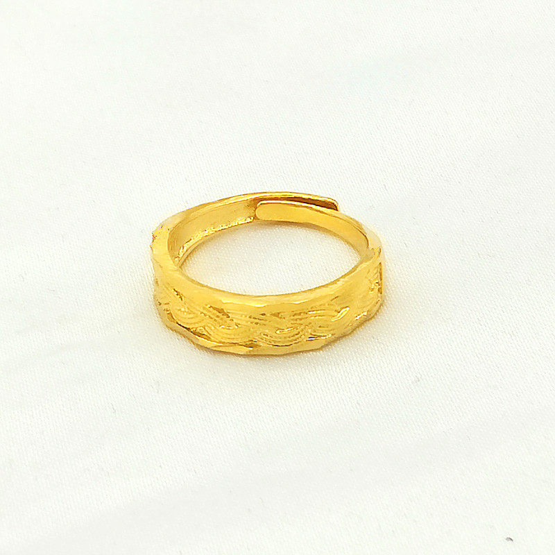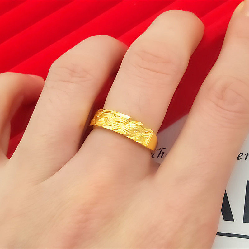 📚 镀金戒指男女同款仿沙金首饰不掉色黄金色开口水波纹情侣对戒指环