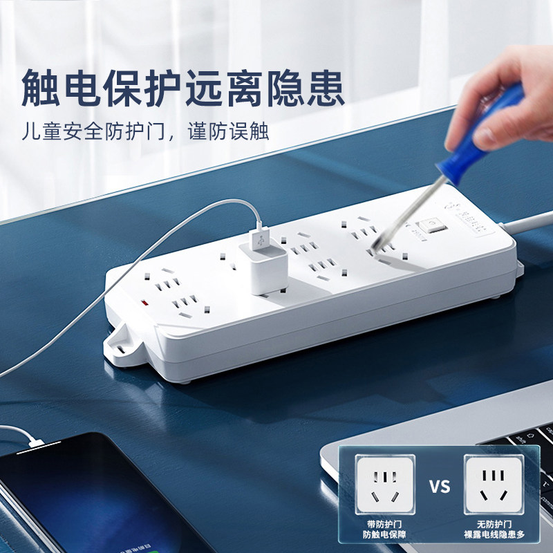 📚 海锚排插带USB多功能拖接线板3/5米插排宿舍用学生插座插板带长线