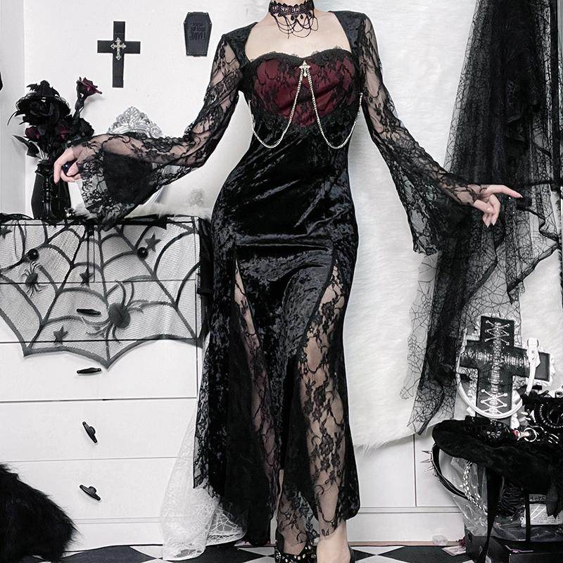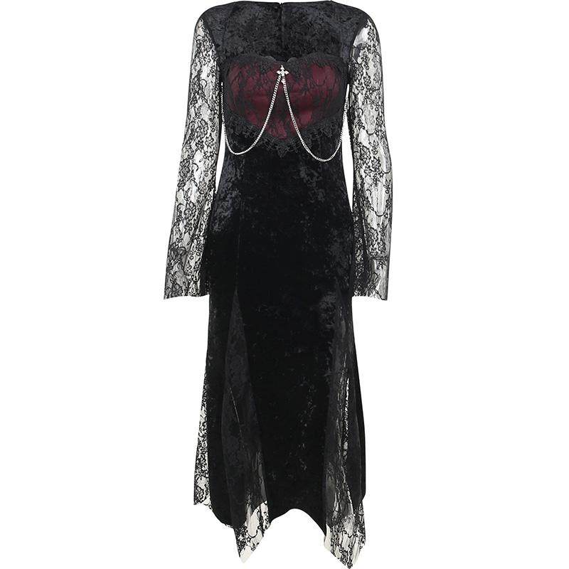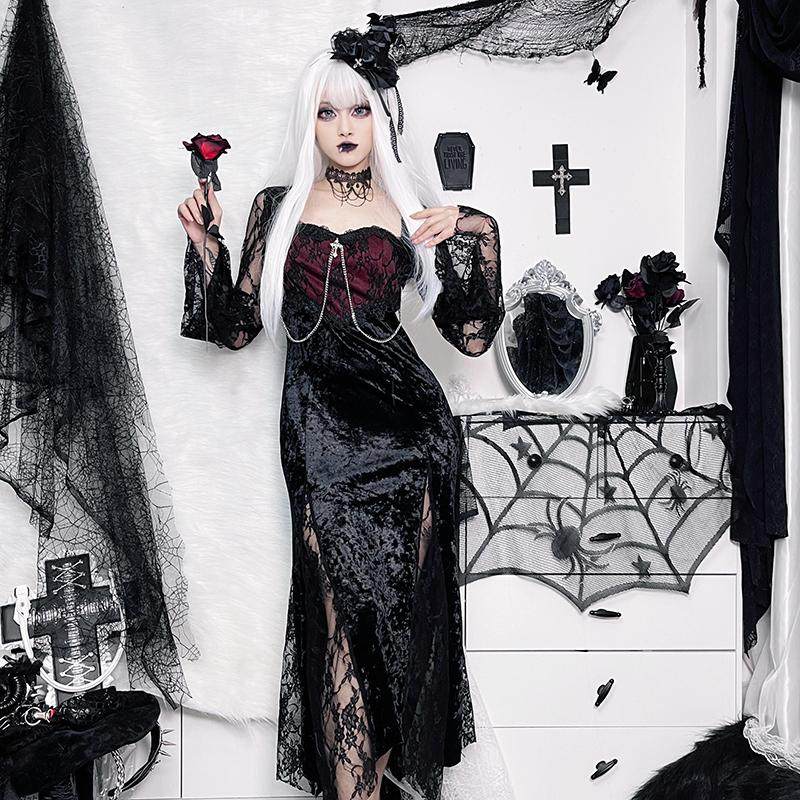 👗 爆款来袭!暗红色蕾丝连衣裙,带你穿越到哥特圣诞的神秘世界!🎄