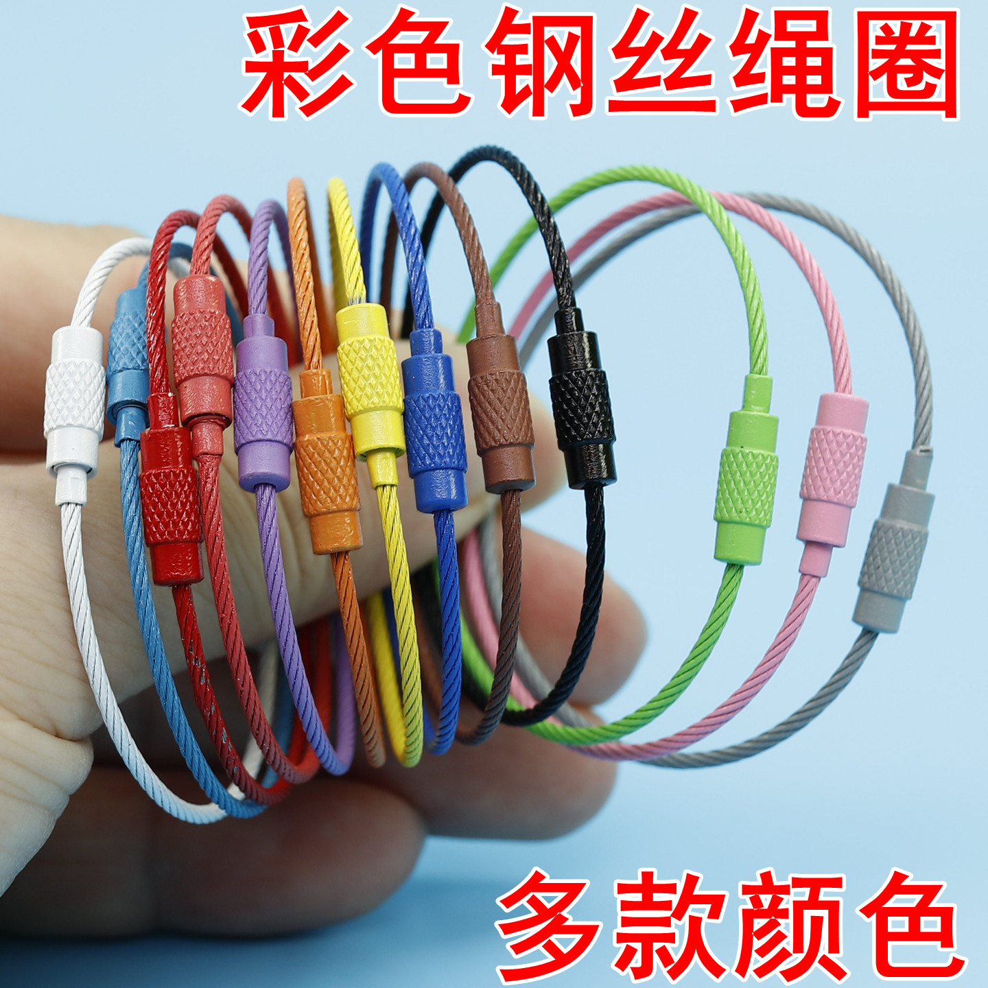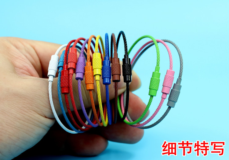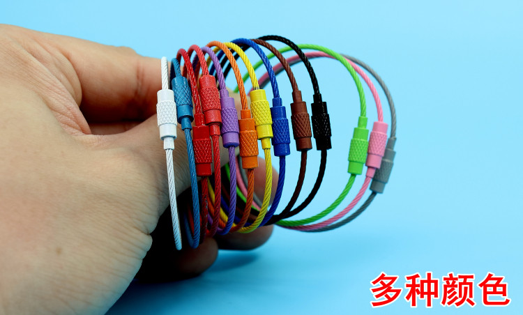 📚 彩色钢丝绳不锈钢钥匙圈绳户外配件汽车拉伸钥匙扣回弹钥匙扣绳圈