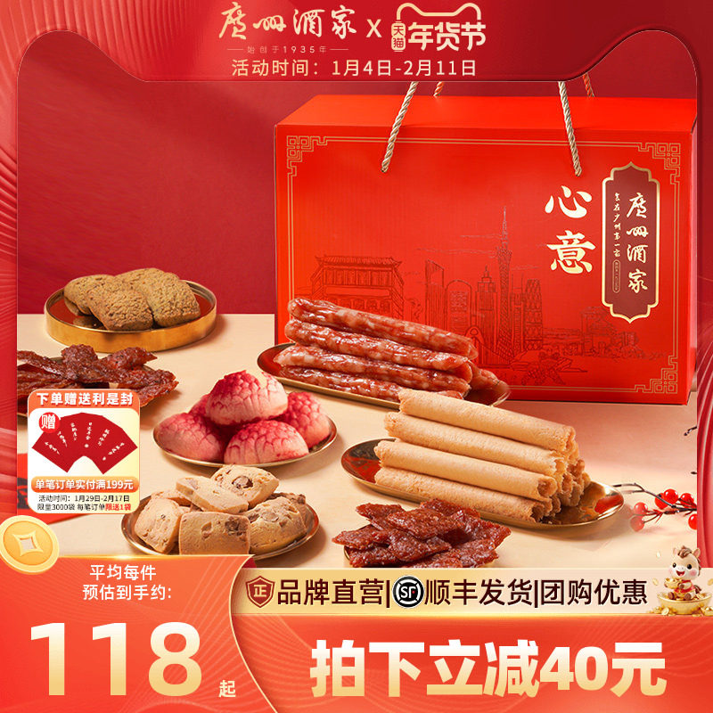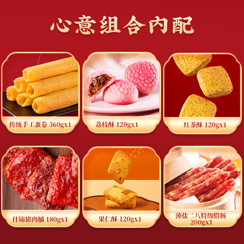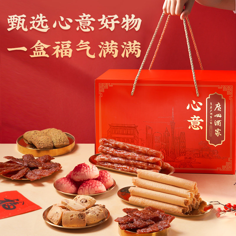 📚 广州酒家心意酥饼腊味组合年货礼盒广式腊肠荔枝酥饼干特产送礼品