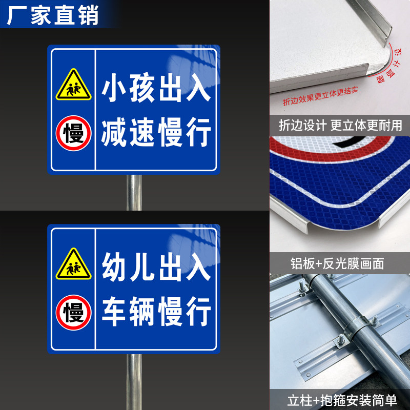 📚 注意儿童警示牌小孩出入减速慢行安全路牌指示牌学生出入注意行人路口交通标志牌前方学校小孩出没标识牌定制