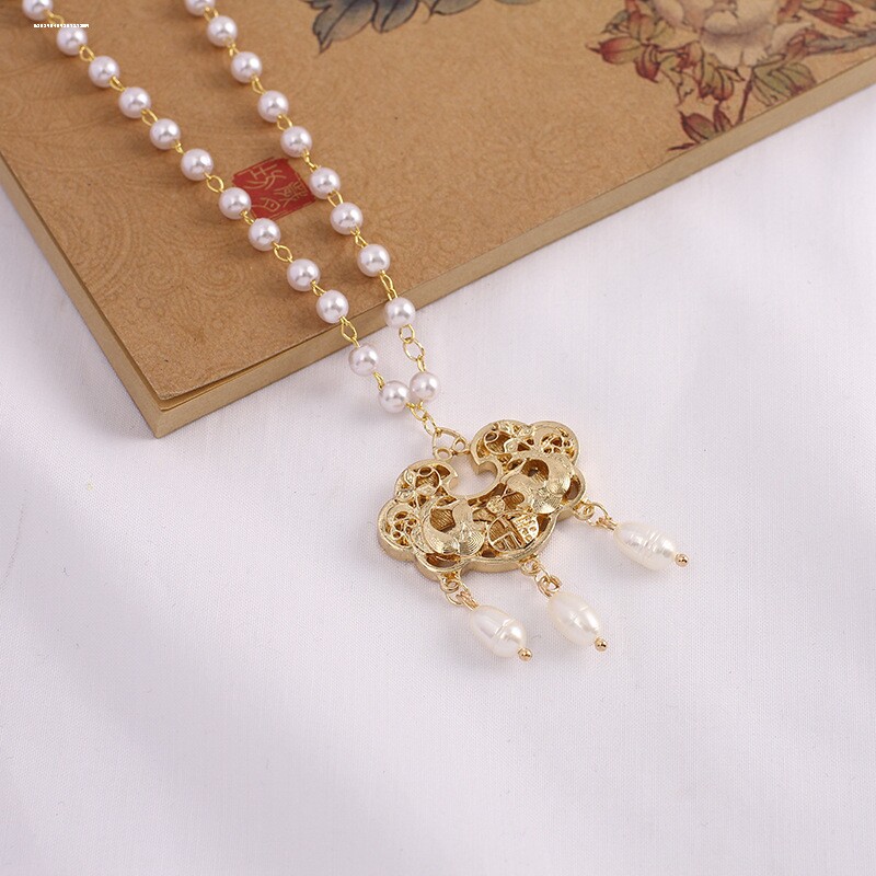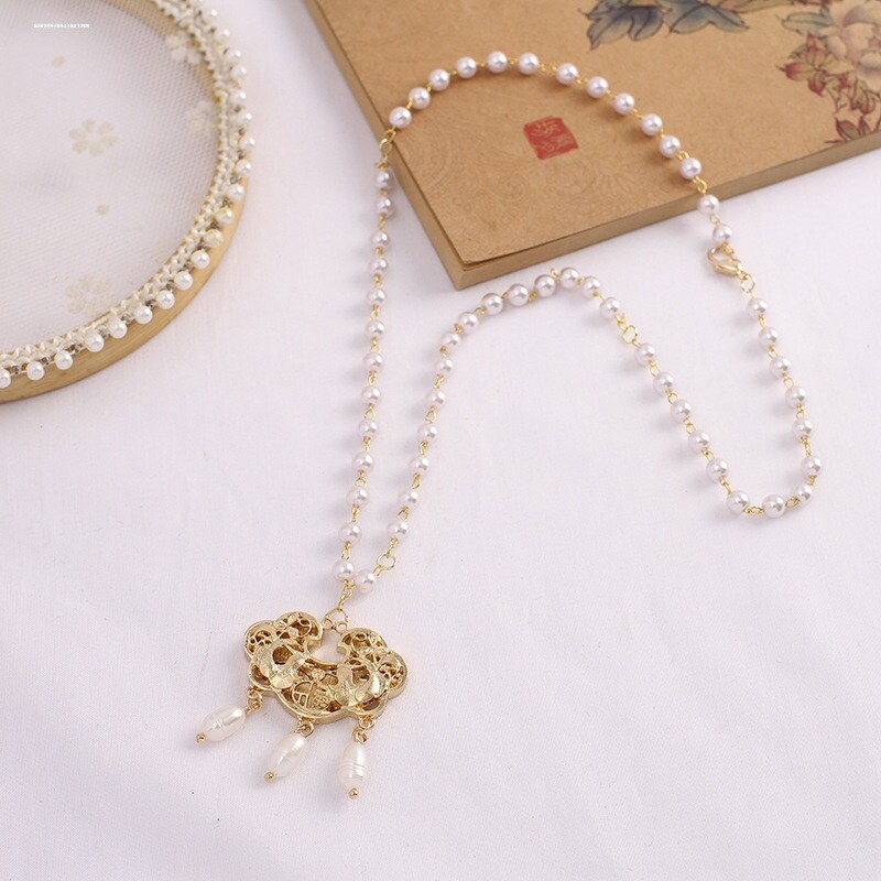 📚 水滴合金锁头复古风汉服项圈璎珞平安锁项链