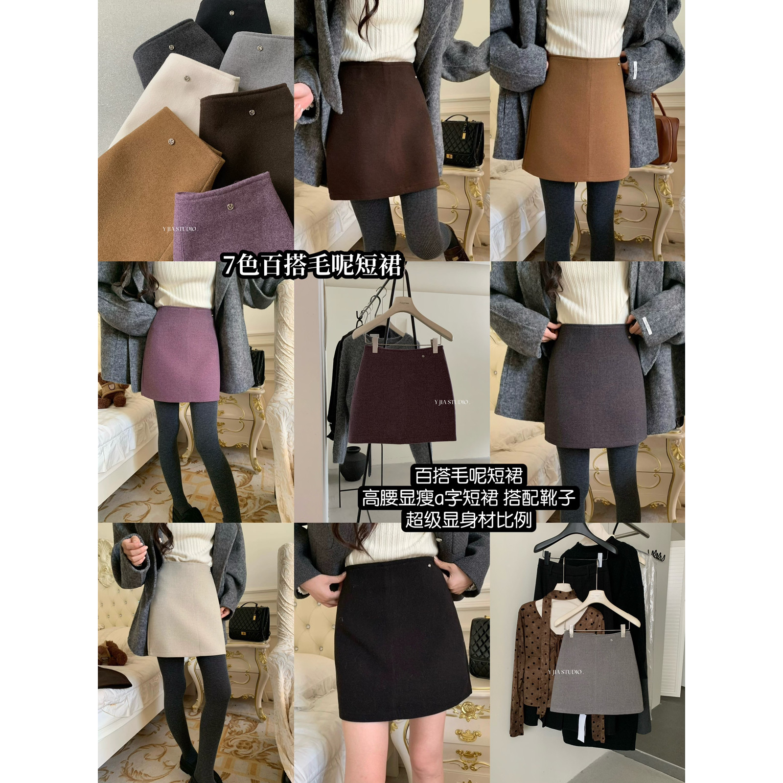 📚 TENG OOTD十三行毛呢短裙~百搭款秋冬高腰显瘦a字半身裙女5759-5
