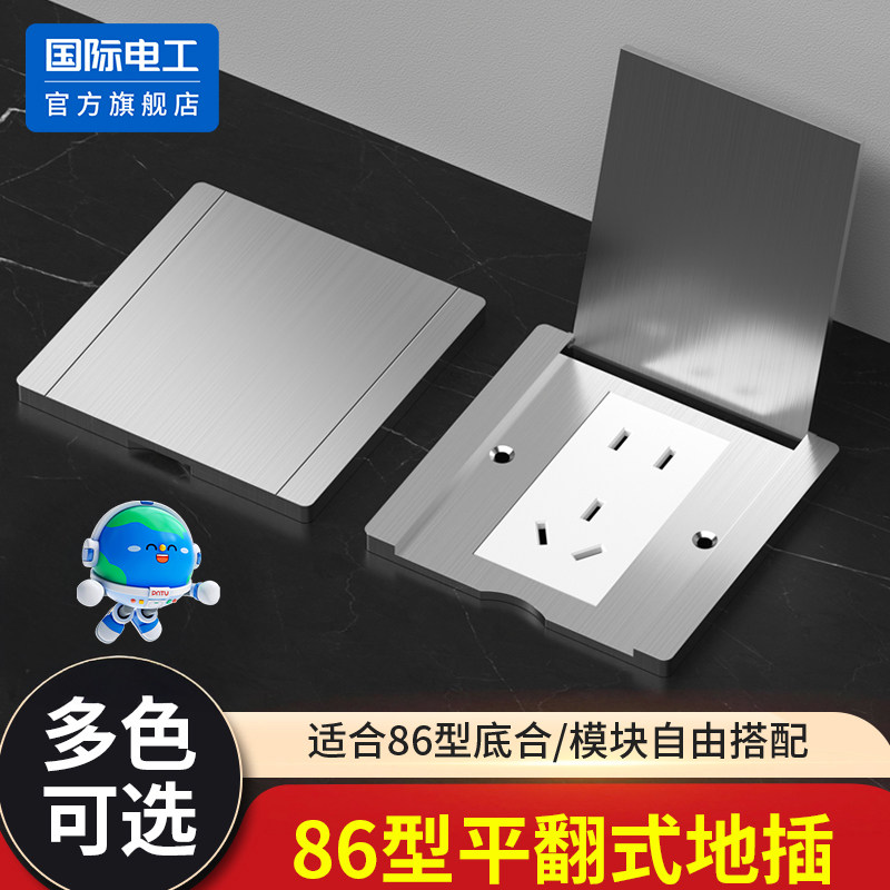 📚 国际电工86型隐形地插座隐藏式超薄防水盖板地面插座五孔网络家用
